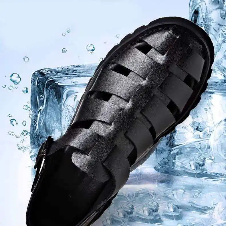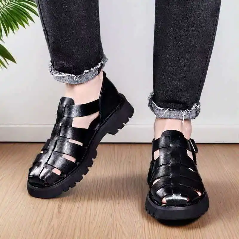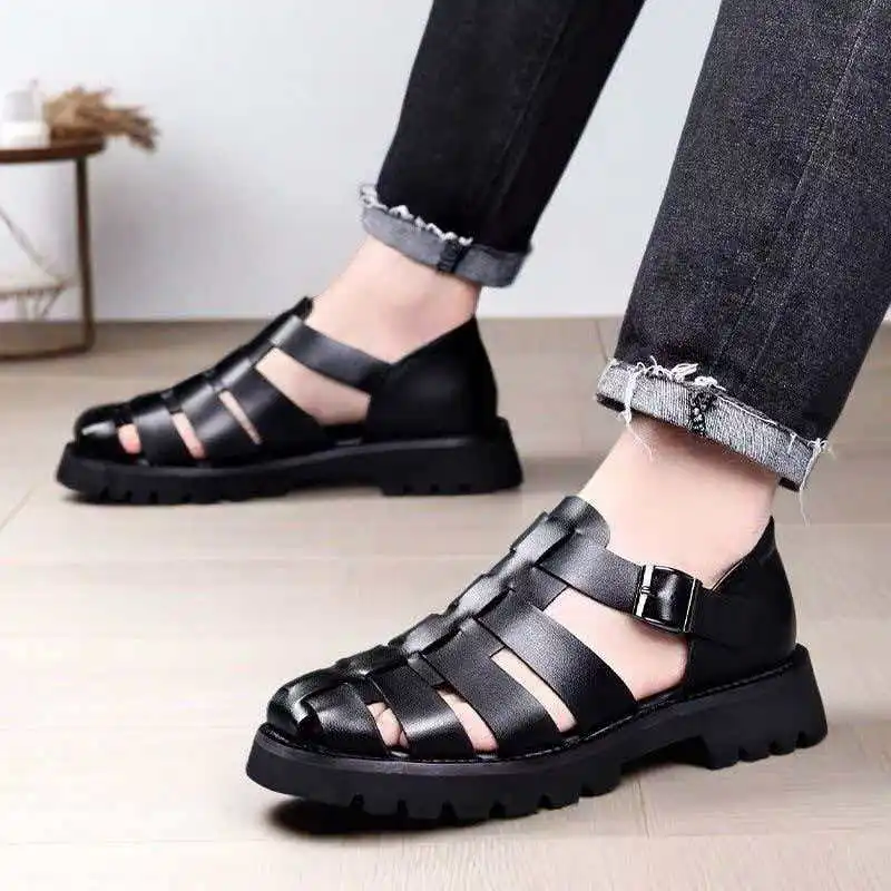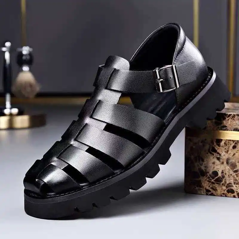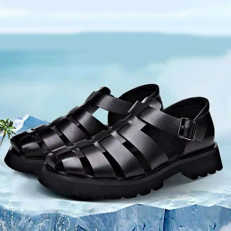 Summer Retro Style Leather Sandals Cool Breathable Lightweight Thick Soled Foot Cover Buckle Shoes Fashion Men's Shoes