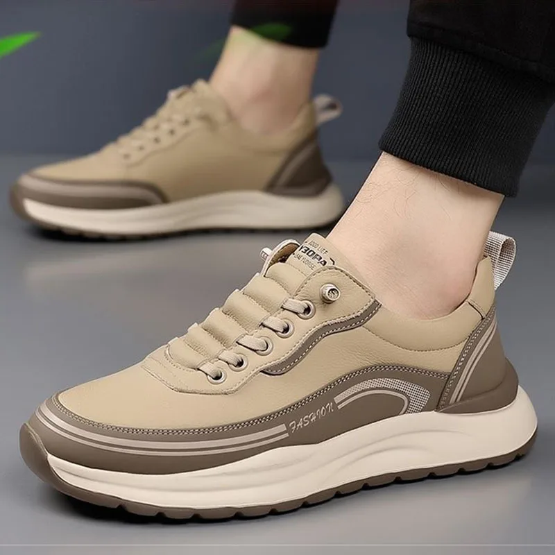 New Men's Wear-resistant Lightweight PU Upper Slip-on Color-block Versatile Flat Lightweight Casual Sports Trendy Leisure Shoes