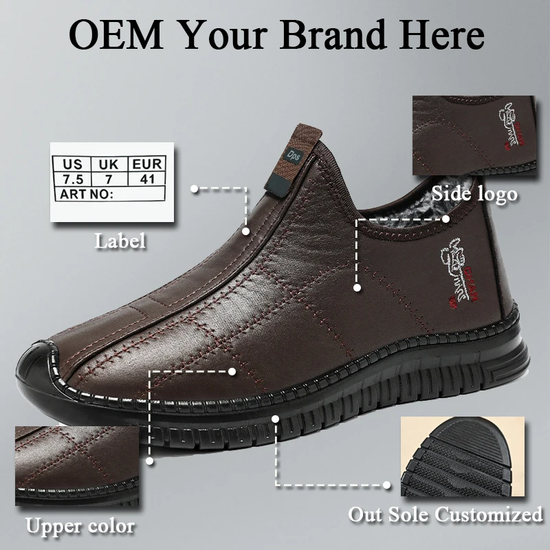 Direct Factory Sales Winter Plush Thick Waterproof Leather Sole Warm Shoes for Men Casual Shoes Warm Chef Shoes