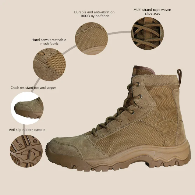 OEM ODM Custom Manufacture Men's Tactical Boots 6 Inches Lightweight Desert Boots