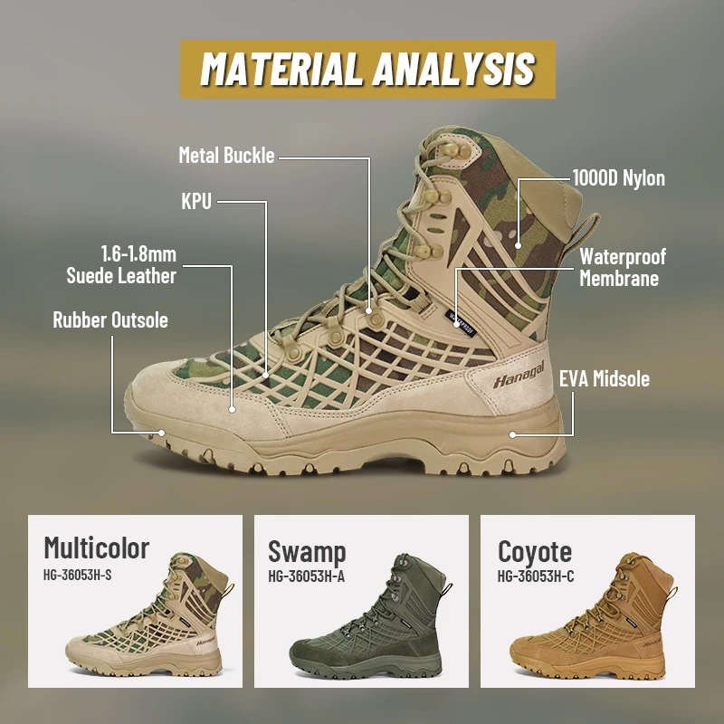 Hanagal Factory OEM ODM Custom Men's Waterproof Coyote Leather Hunting Rubber Boots Waterproof Thermal