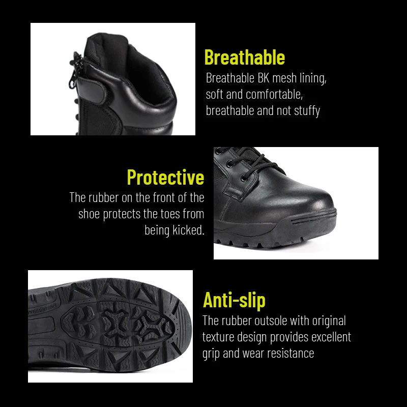 Factory OBM ODM Custom Wholesale Under armor Men's Tactical Black Boot with Zipper Waterproof