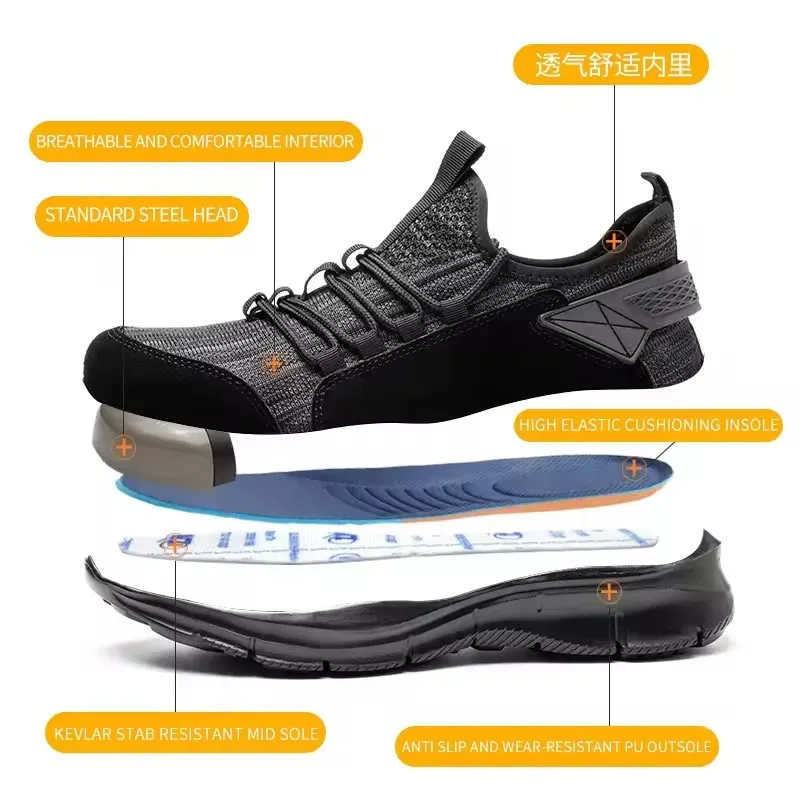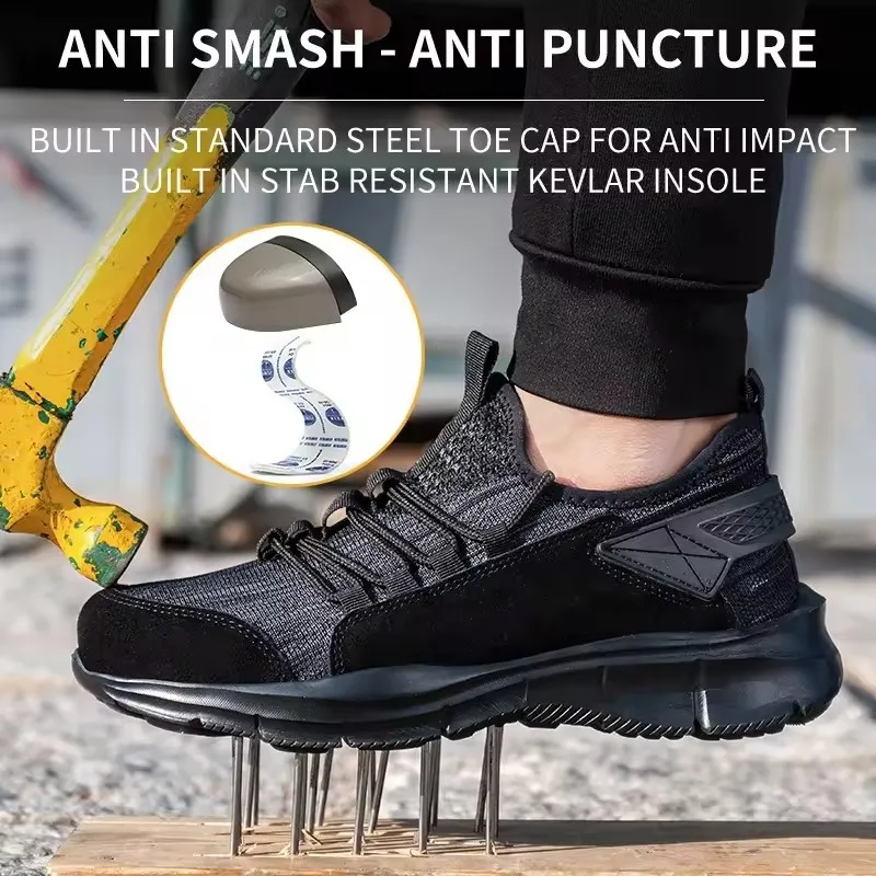 2026 Steel Toe Lightweight Breathable Comfortable Safety Sneakers Anti-Puncture Indestructible Construction for Safety Men Shoes