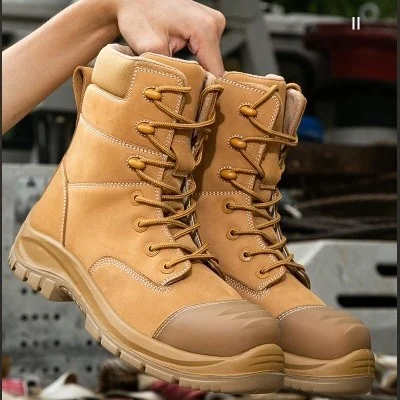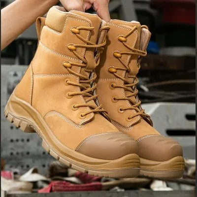 High Top Stock Safety Work Shoes Fiberglass for Kevlar Anti-Smash Anti-Puncture Water-Resistant Non-Slip Steel Toe