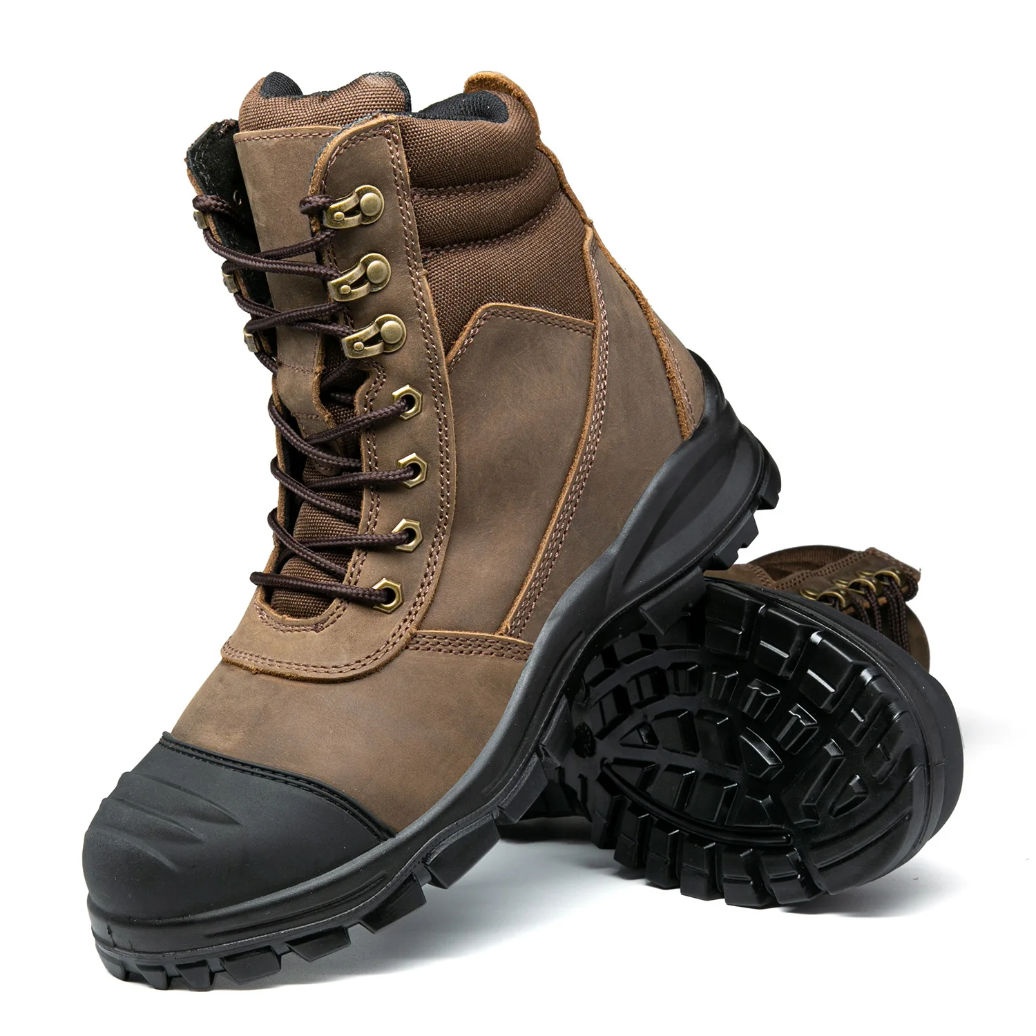 Top Layer Crazy Horse Leather Safety Shoes High Zipper Anti-Scratching Anti-Puncture Labor Protection for Outdoor Construction