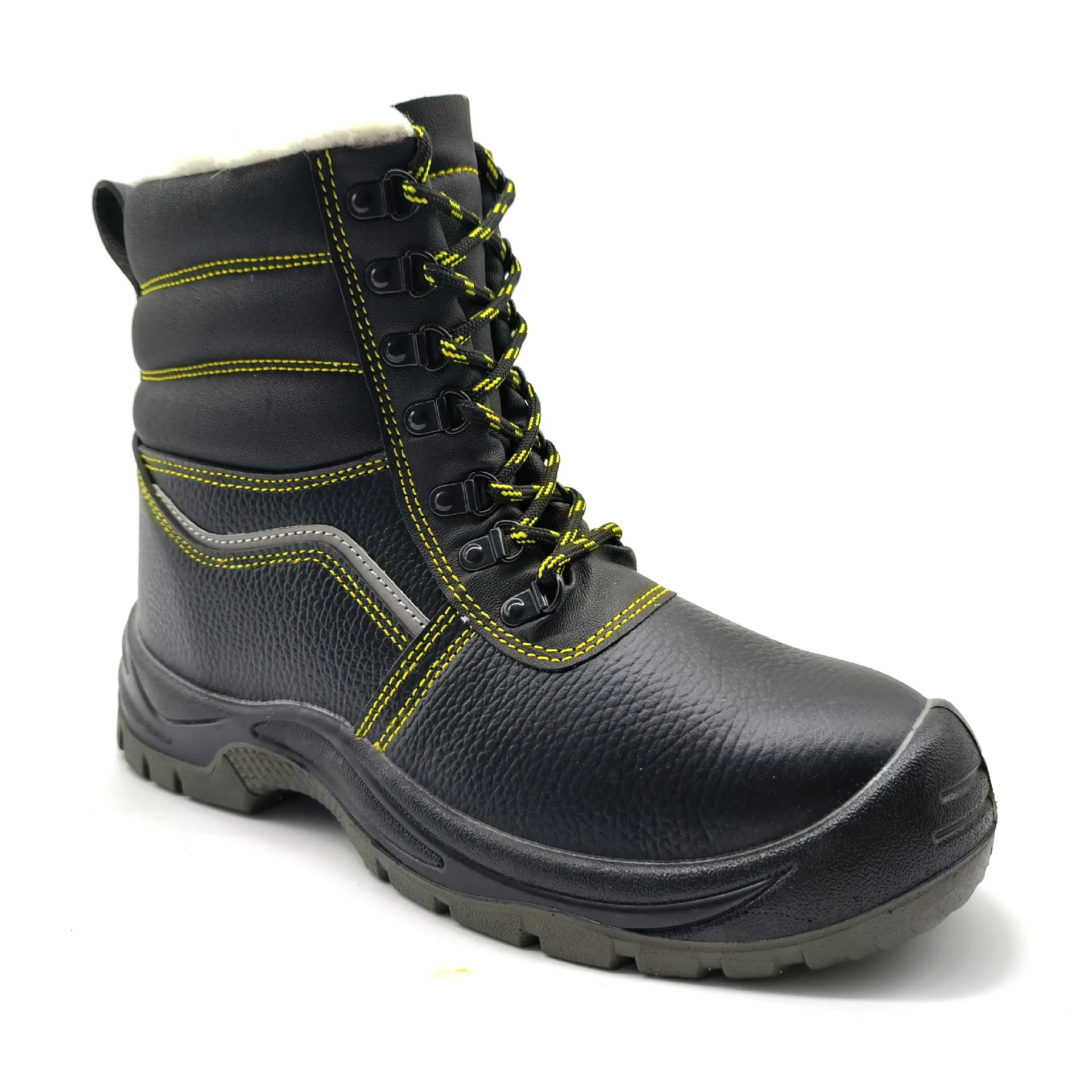 Men's High-Top Winter Safety Shoes Embossed Leather Construction Site Shoes PVC Anti-smash Fleece Lining Labor Protection