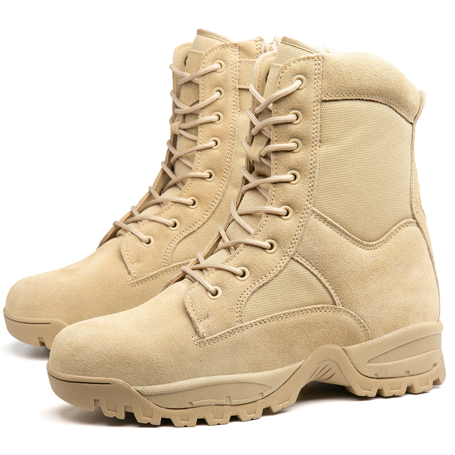 Winter New High-Top Sand-Colored Work Boots Suede Leather Upper Breathable Mesh Lining Side Zipper Easy On/Off EVA Outsole Toe