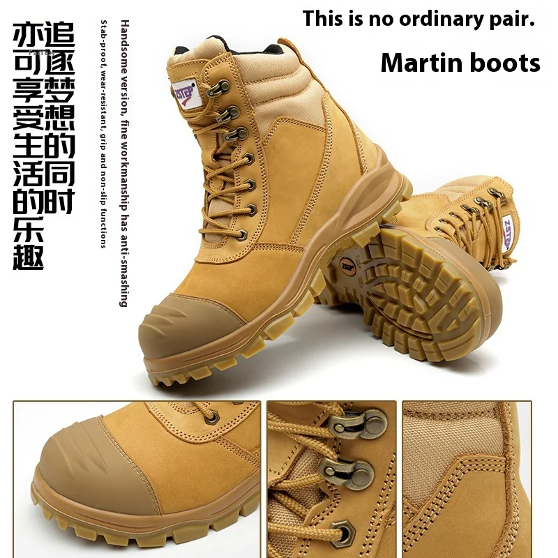 High Quality Brown Light-Weight Leather Safety Shoes Non-Slip Oil-Proof for Construction Workers Miners Winter Steel Toe Boot
