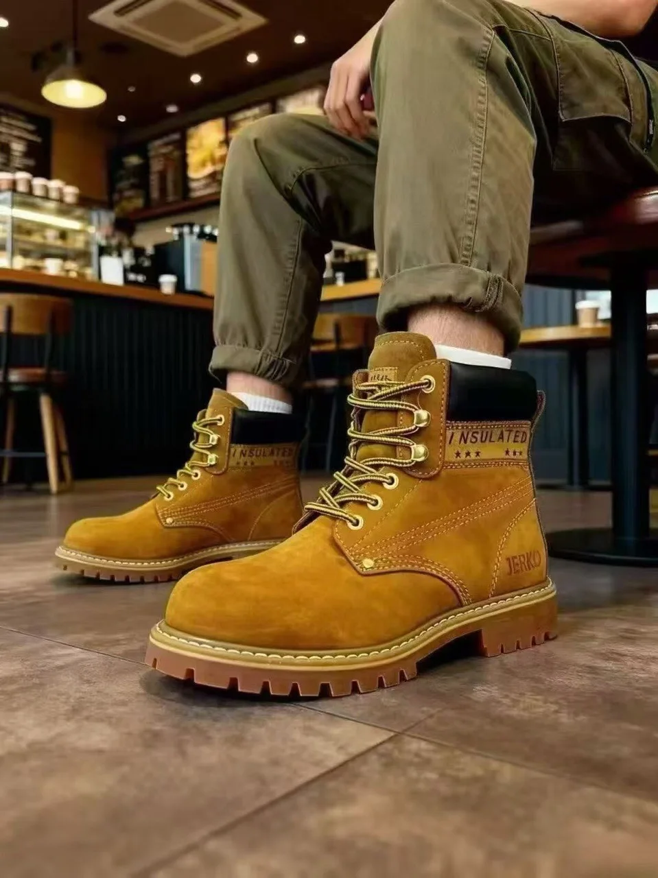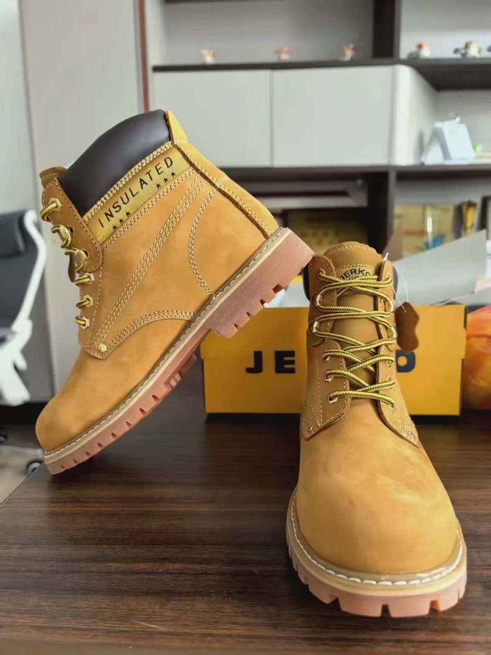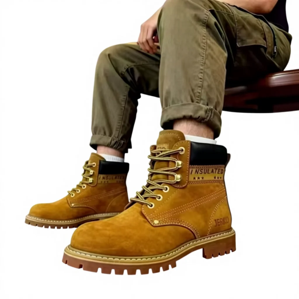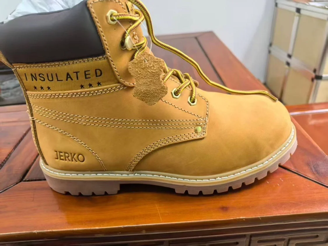 Men's Brown Ankle-Height Work Boots Winter Outdoor Safety Comfort Construction Shoes Genuine Leather Lace-Up Autumn Wholesale