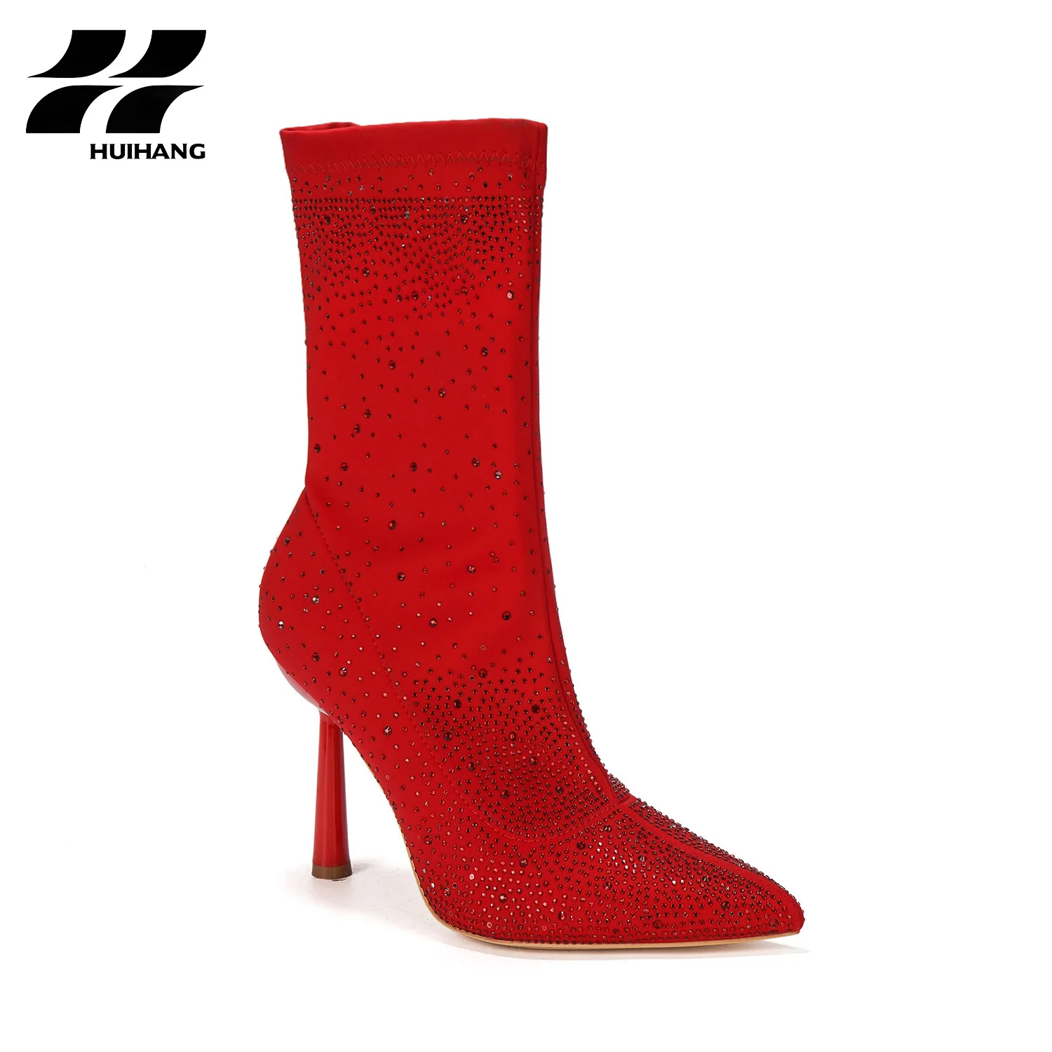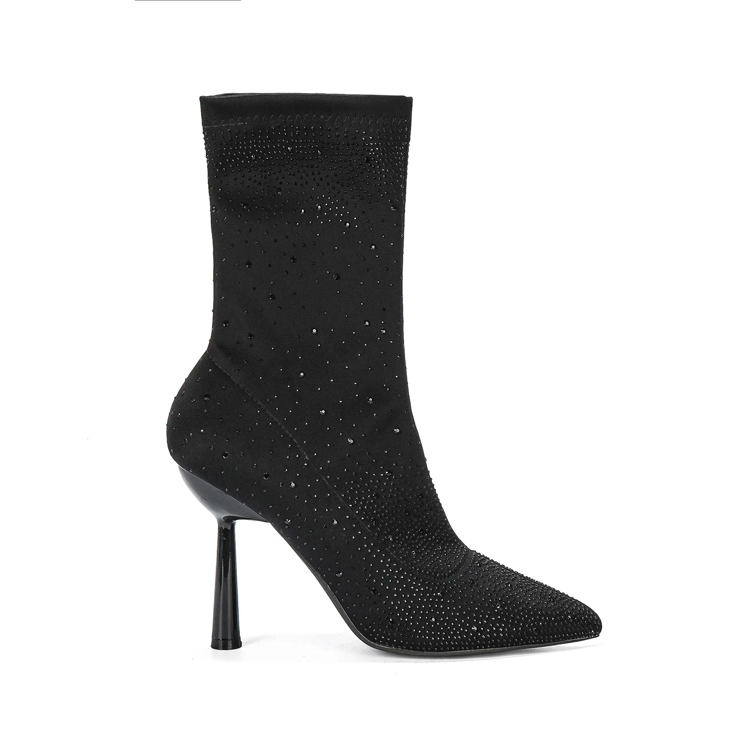 Glamorous Women's Party Evening Sock Midi Boots Comfortable Lightweight Stiletto Rhinestone Embellished Pointed Toe Flexible