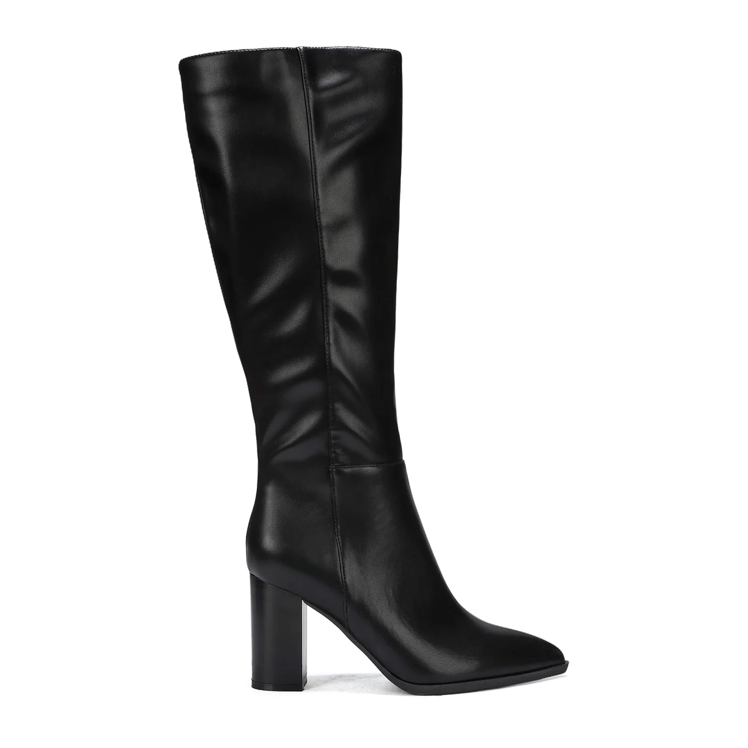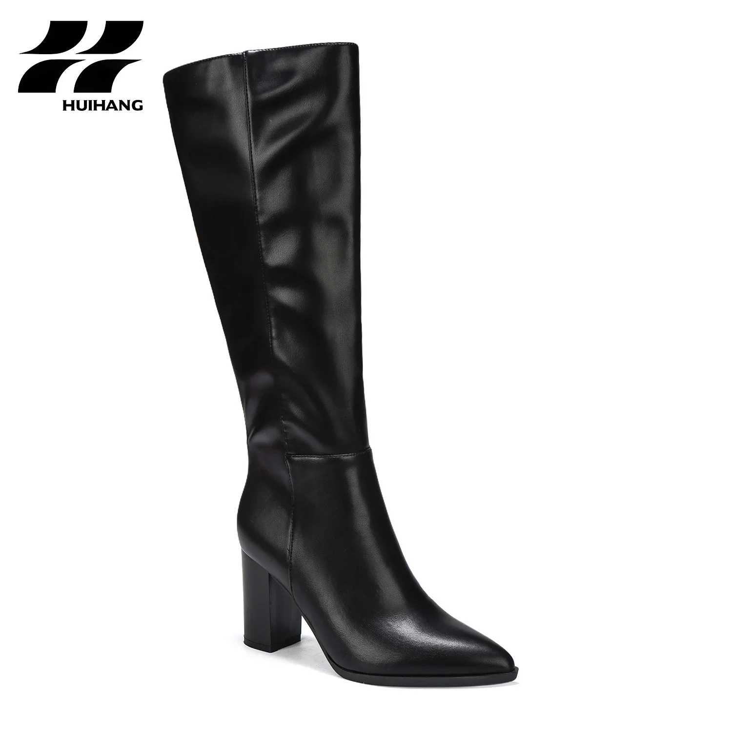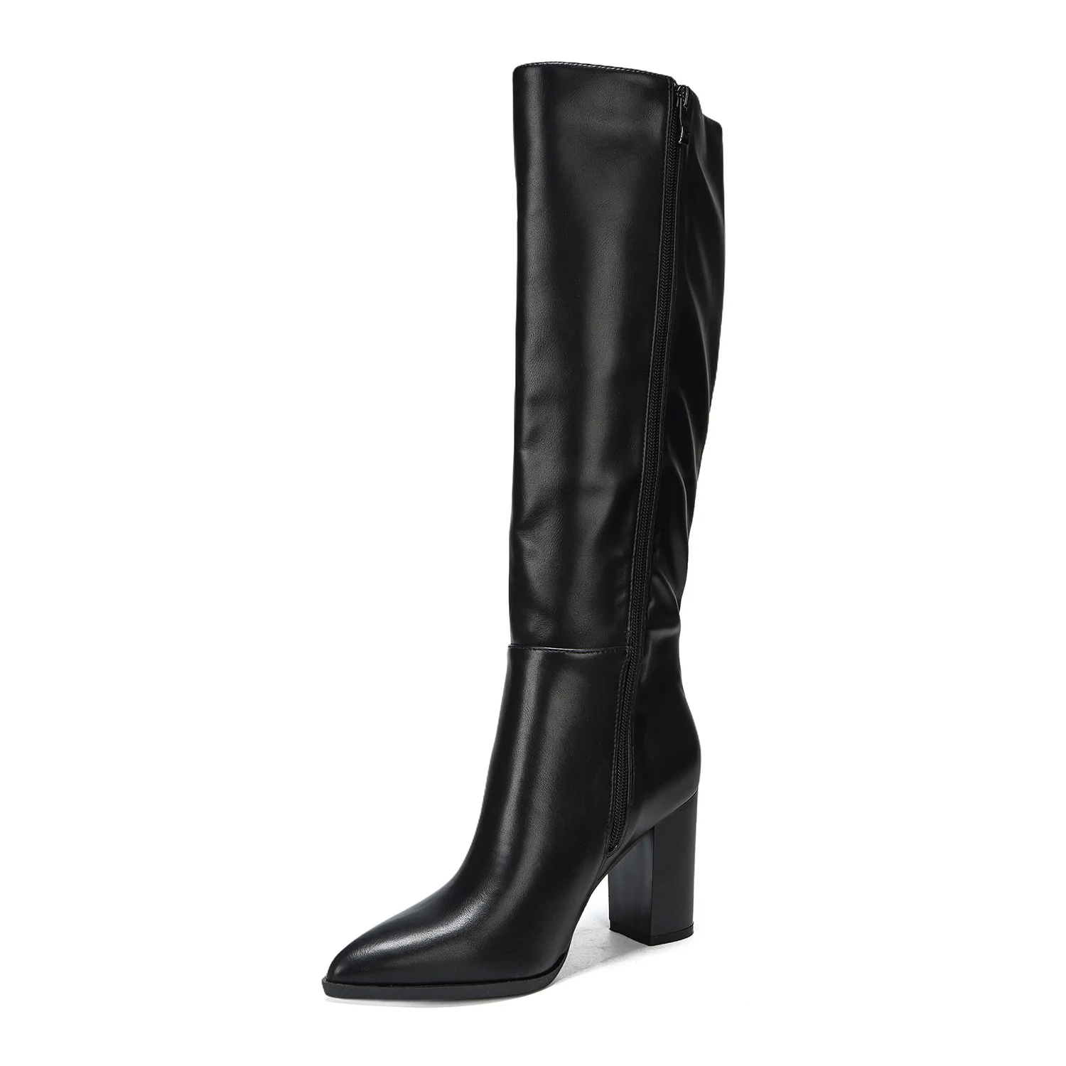 Women's Trendy PU Leather Knee-High Block-Heel Boots for Fall/Winter Comfortable Solid Party Casual Footwear Height Increase