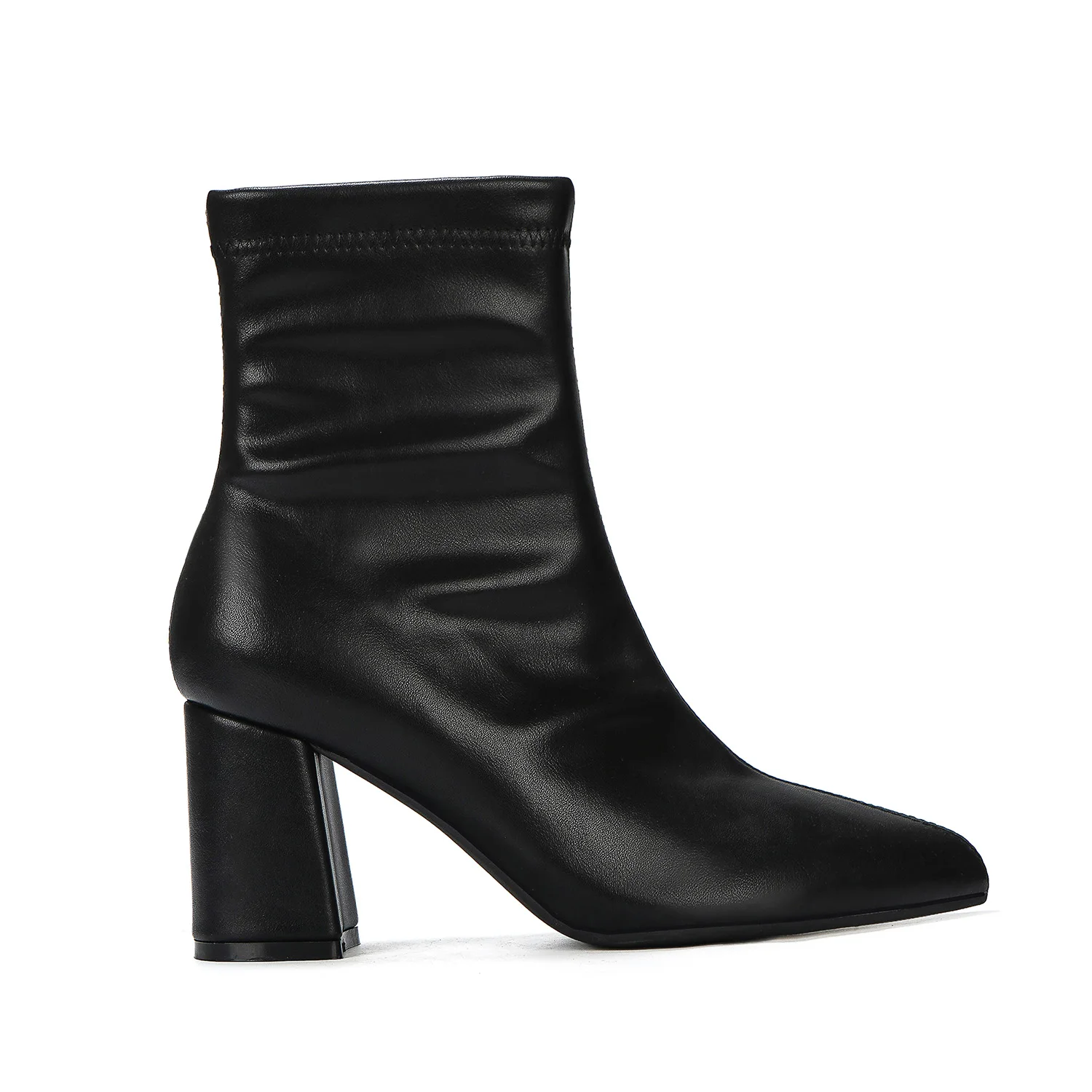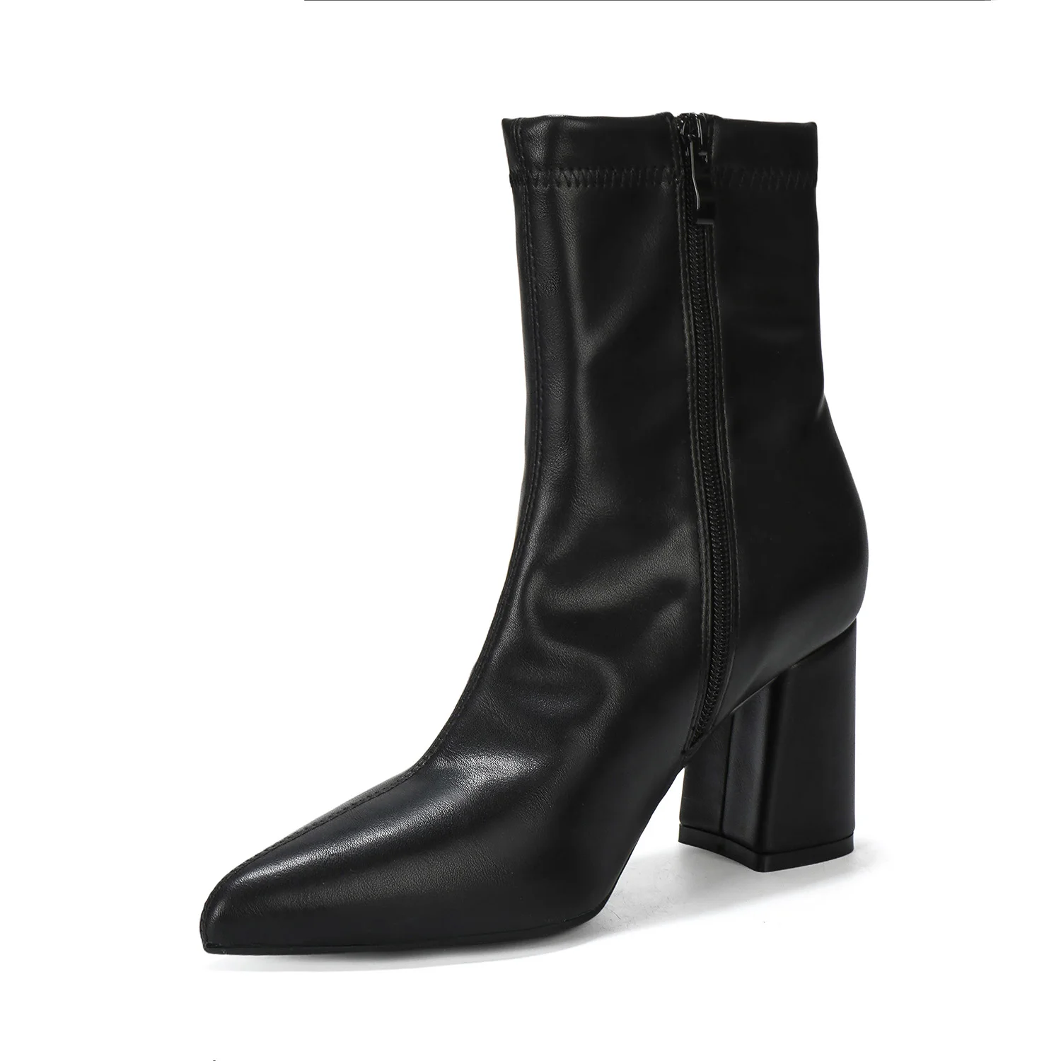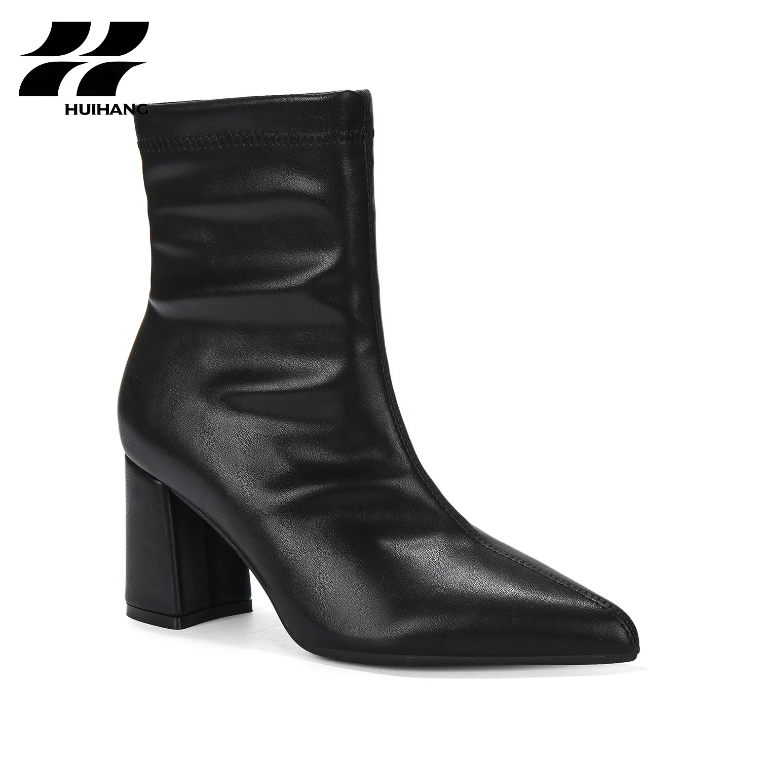 Women's Winter PU Leather Ankle-High Block-Heel Boots with Pointed Toe Slip-On Casual & Party Footwear Trendy for Fall/Winter