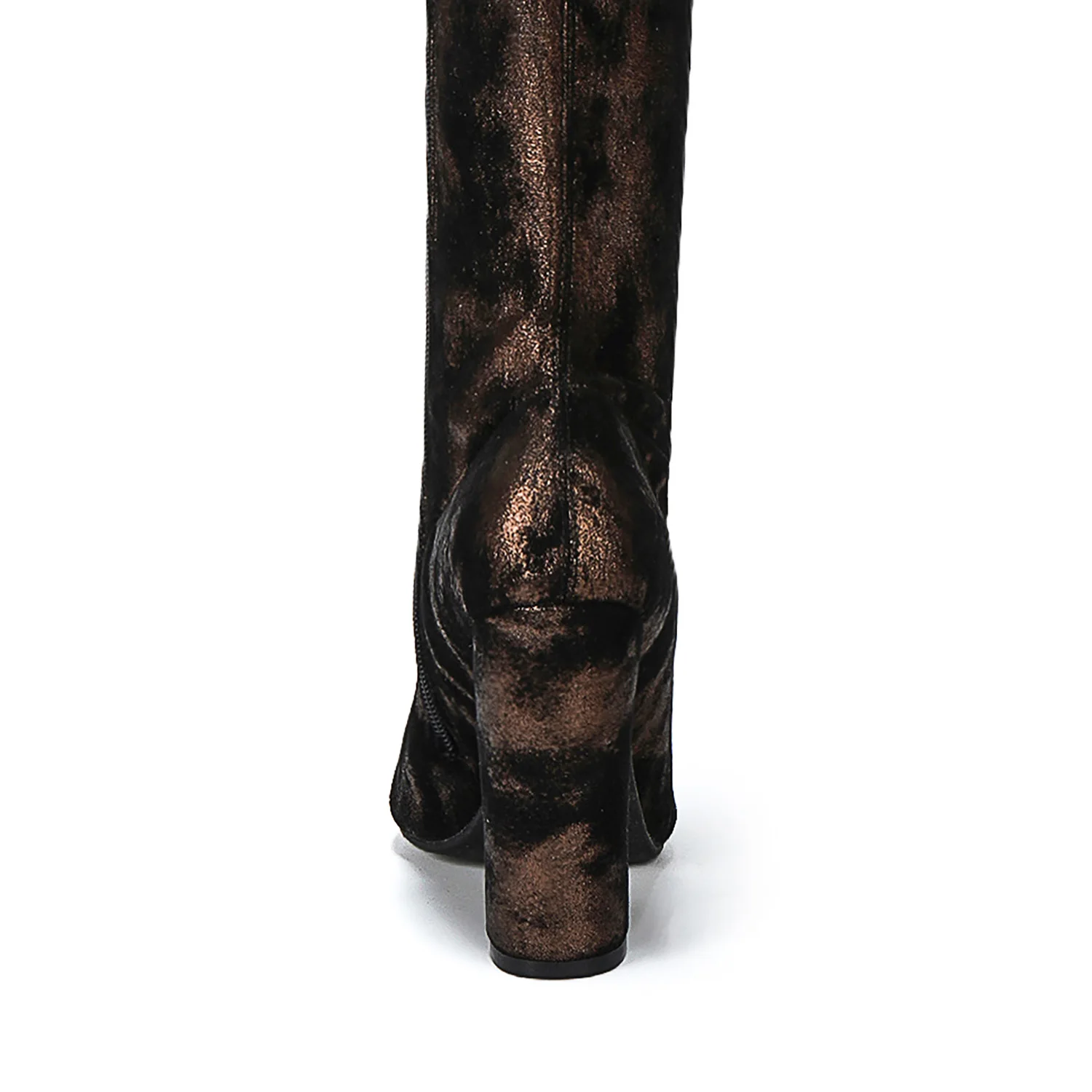 Fashionable Women's High Heel Over-the-Knee Boots with Snakeskin Print Design Comfortable Pointed Toe Zip Closure for Winter