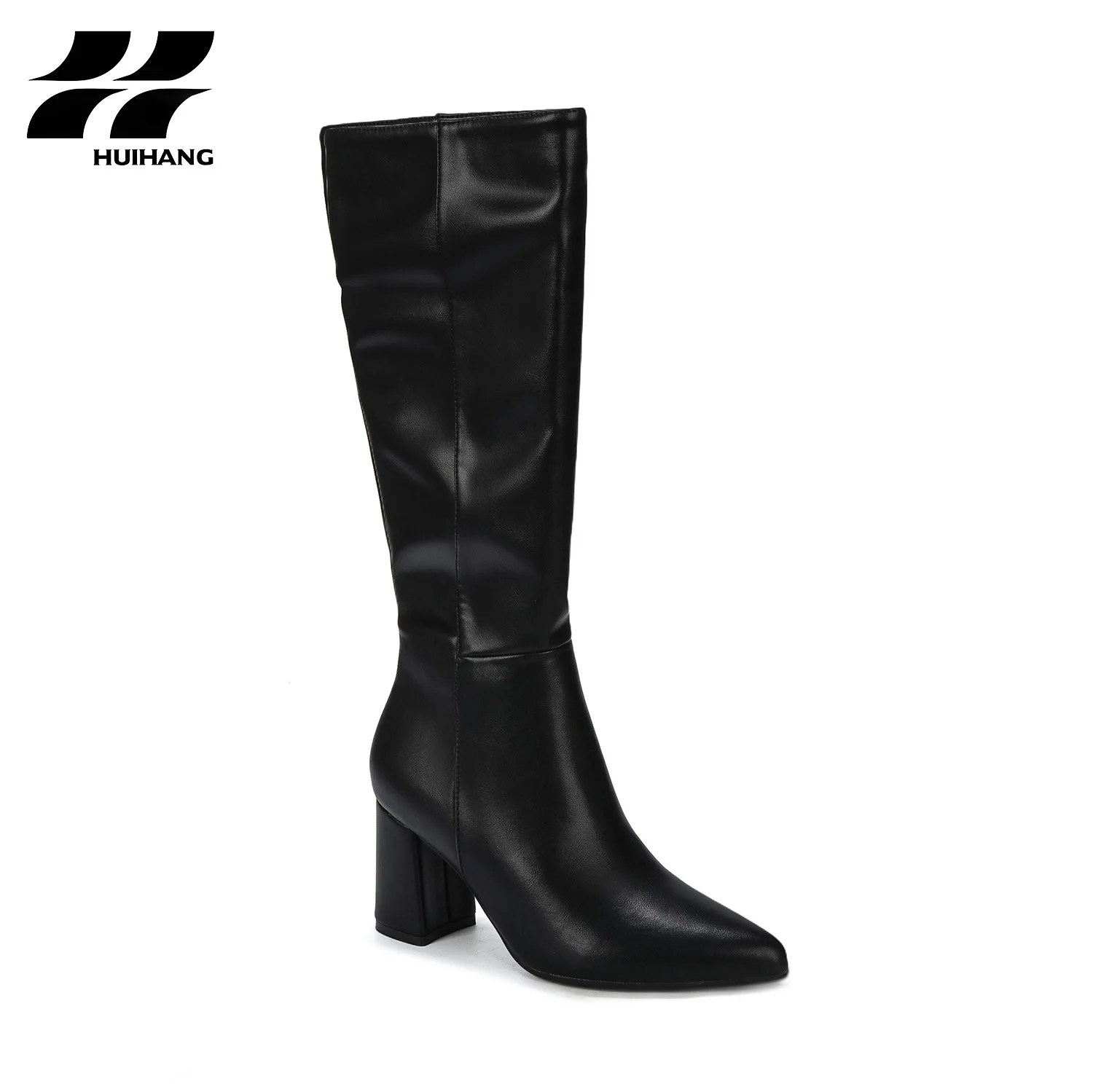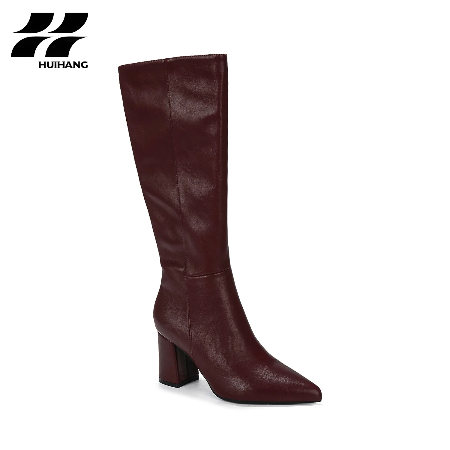 New Release Elegant Slip-On High-Heel Knee-High Boots Comfortable Pointed-Toe Soft Solid Pattern Fashion Trend for Winter Autumn