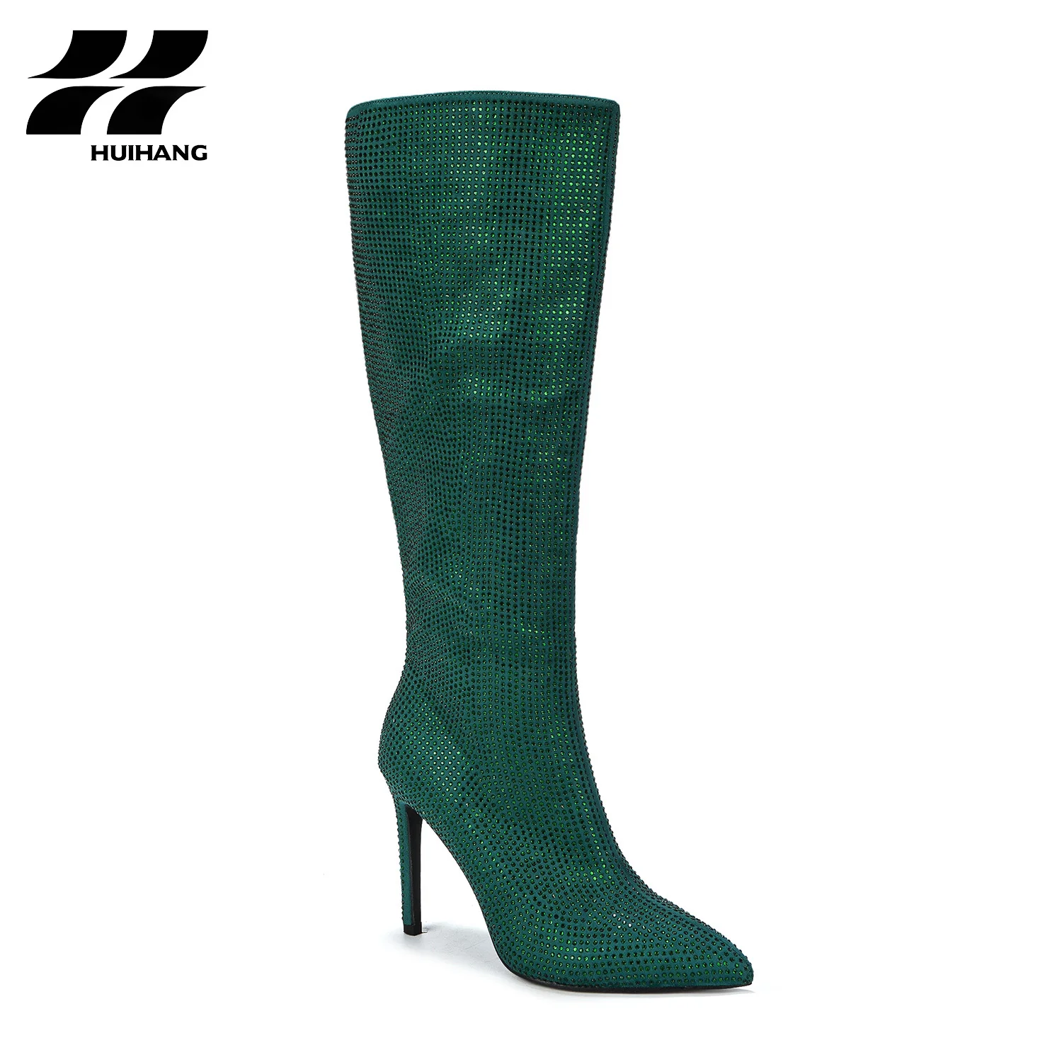 Glamorous Women's Stiletto Boots Rhinestone Knee-High Comfortable Slip-On Solid Fashionable Trend for Party Evening Winter