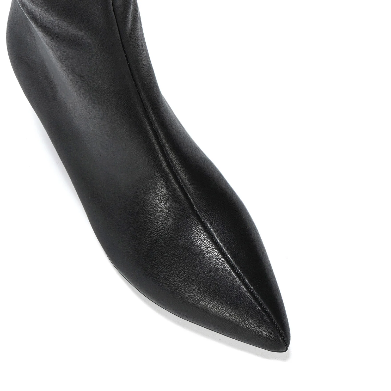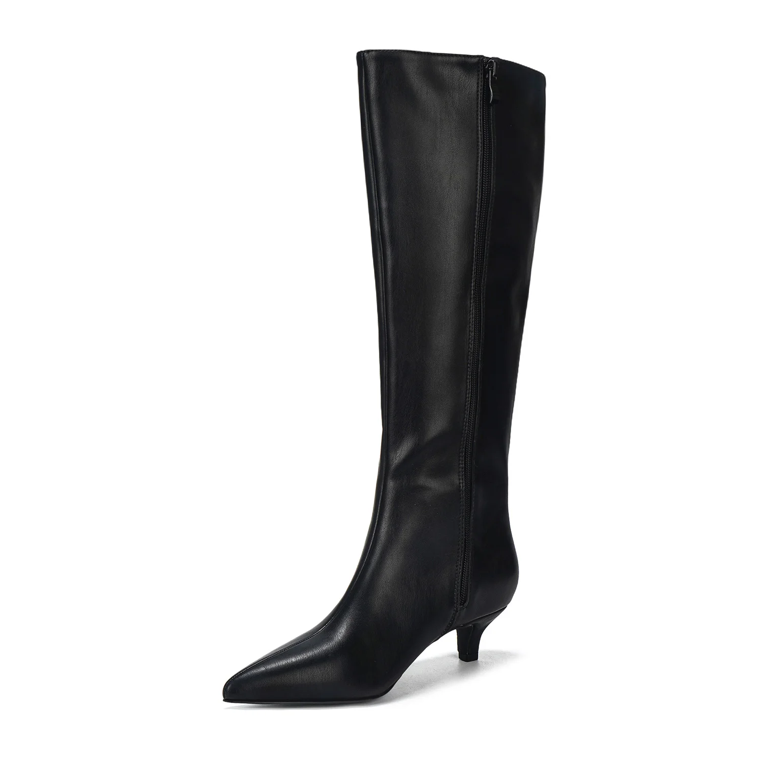 Women's Chic Leather Pointed Toe Stiletto Heel Knee High Boots Comfortable Casual Party Footwear Zip Closure for Autumn/Winter