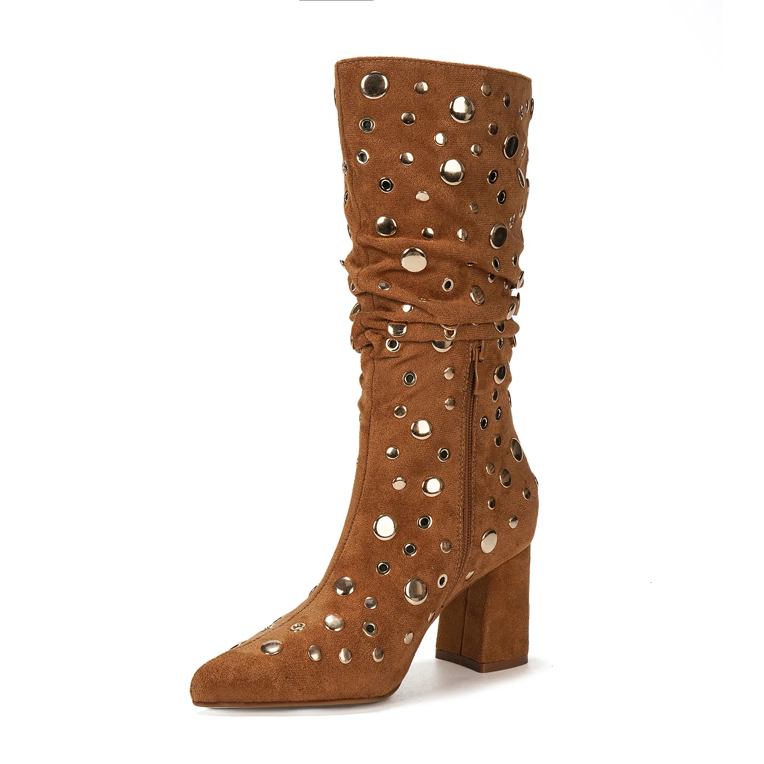 Women's Waterproof Breathable Fashionable Summer Autumn Spring Hard-Wearing PU Upper High Heels with Pointed Toe Trendy Styles