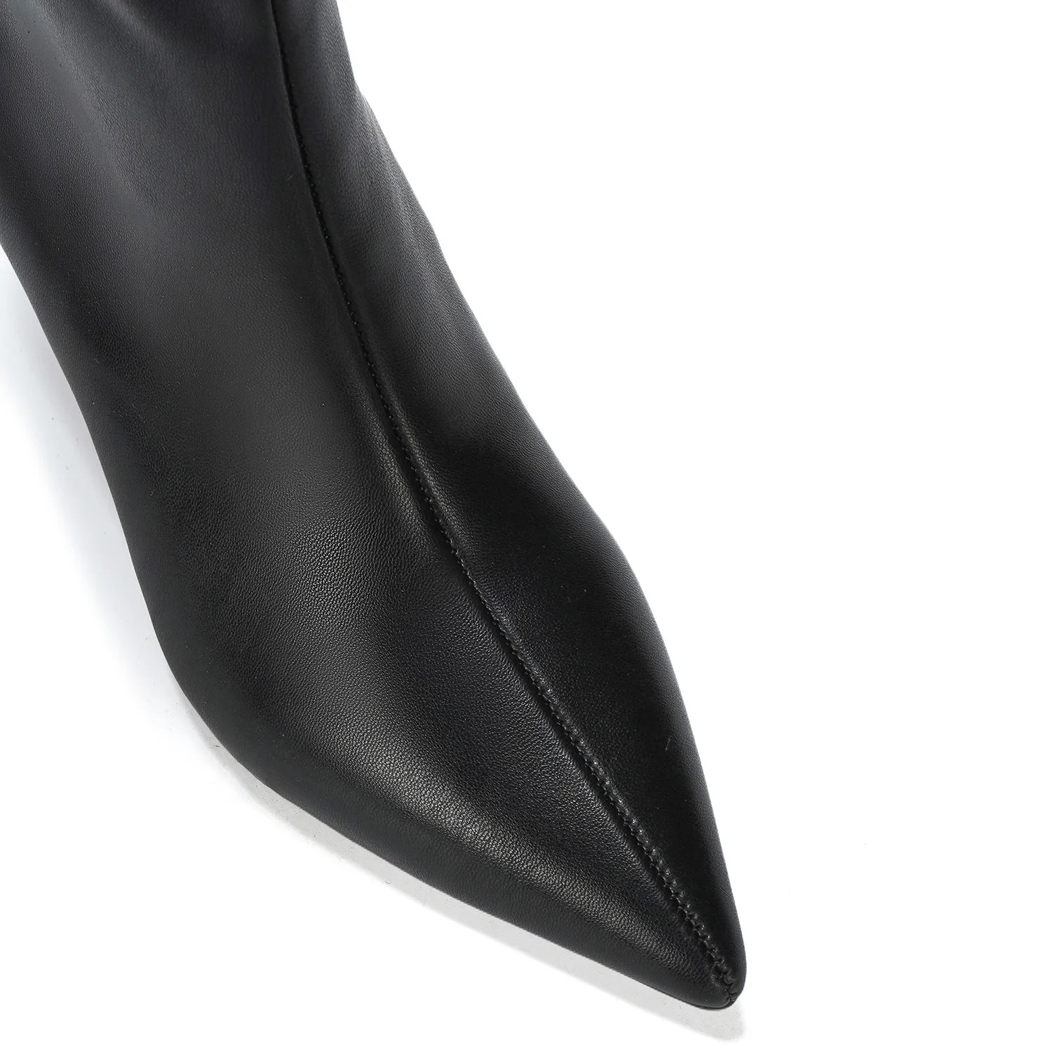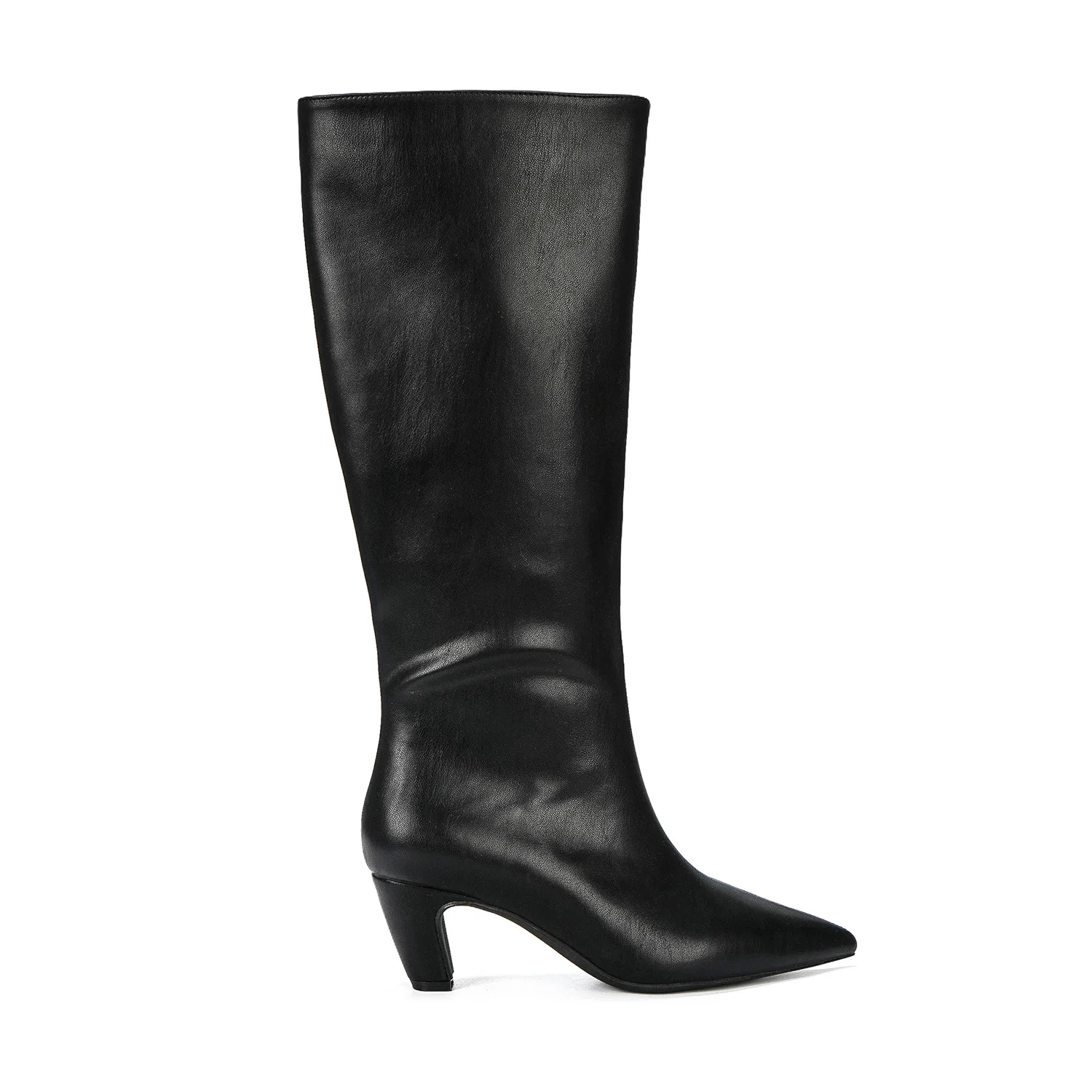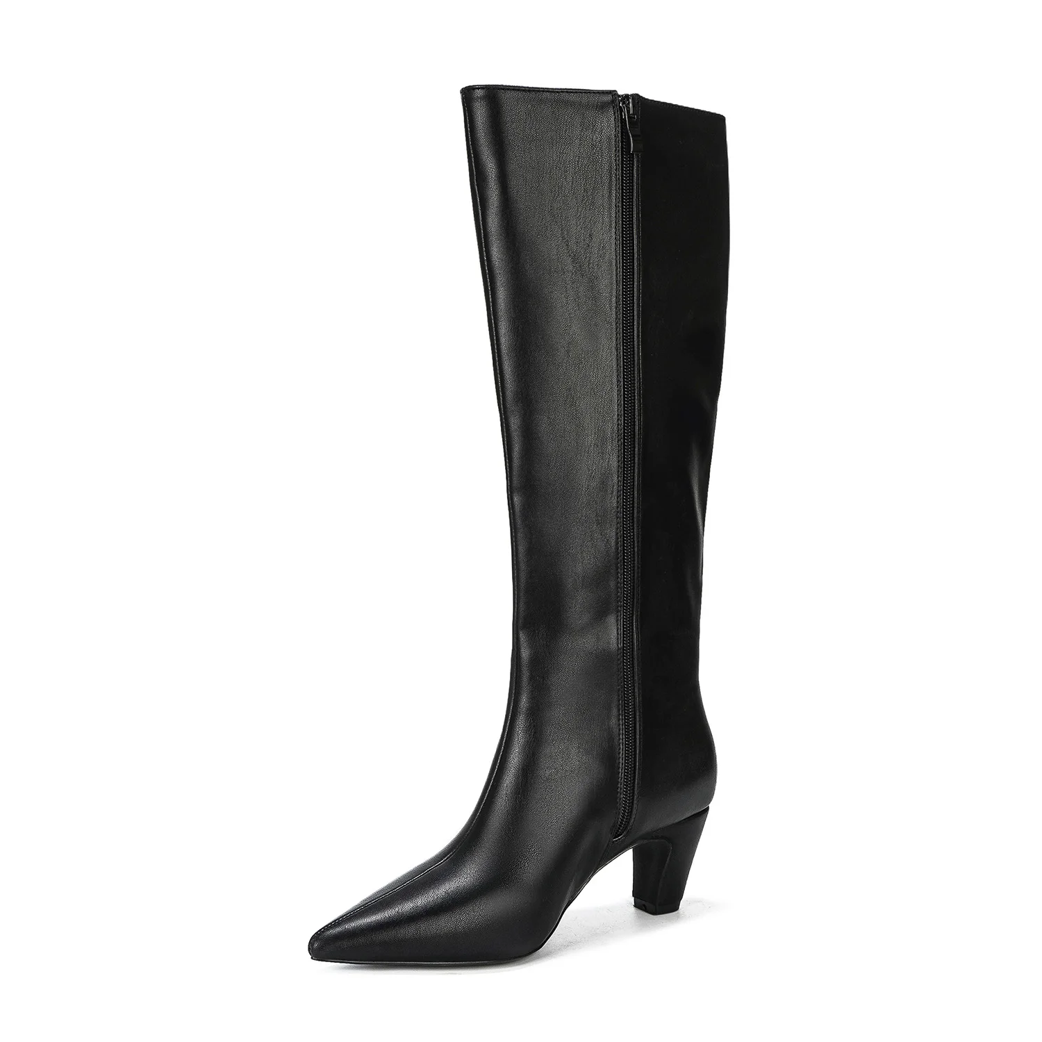 Womens Chic Leather Pointed Toe Block Heel Knee High Boots Comfortable Fashion Trend for Casual Party Zip for Autumn/Winter