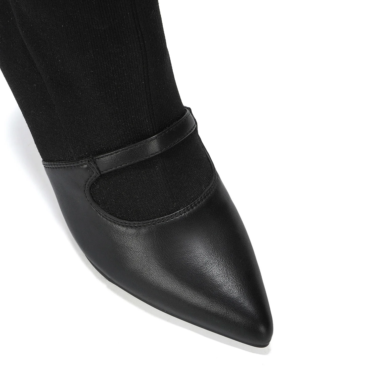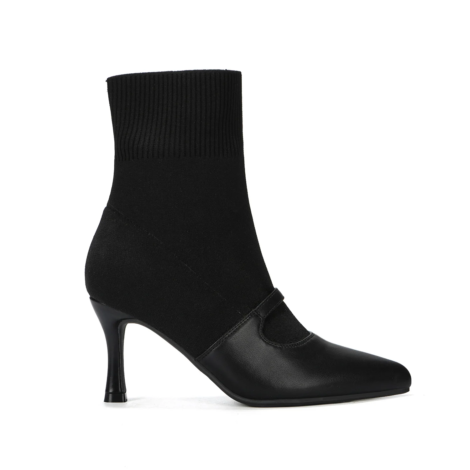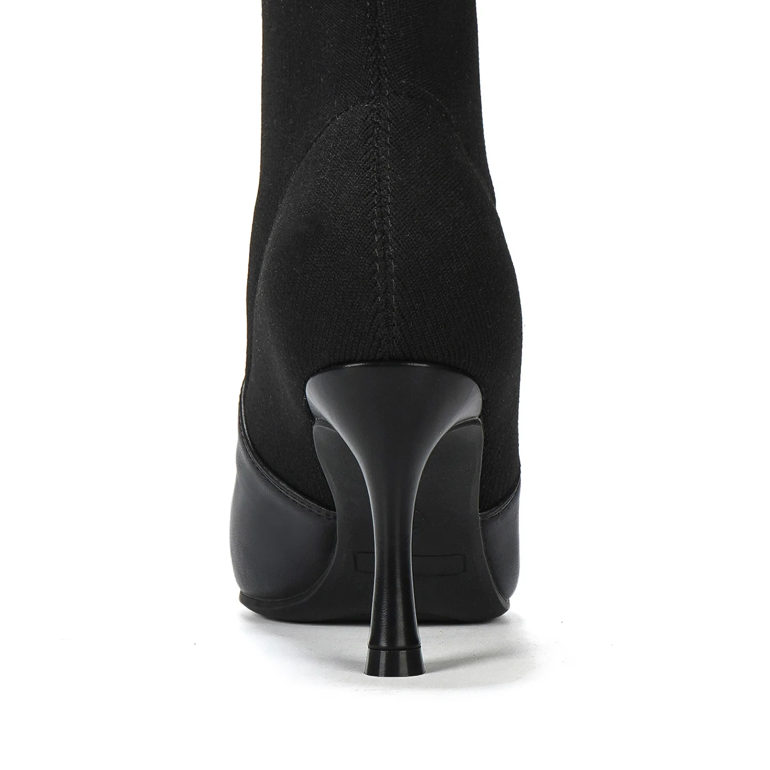 Chic Knit and Patent Leather Pointed Toe Stiletto Ankle Boots: Stylish for Multiple Occasions