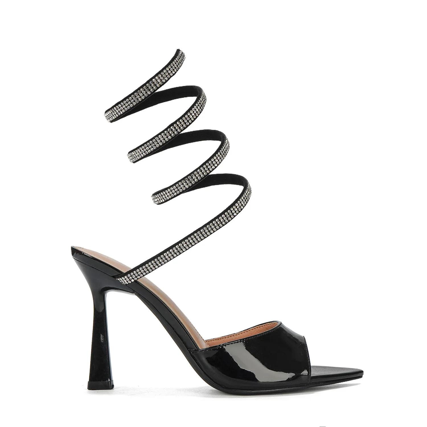 Glam Rhinestone-Wrapped Stiletto Sandals Stylish Pointed Toe Design Lightweight Soft Slip-On Closure for Summer Parties Nights