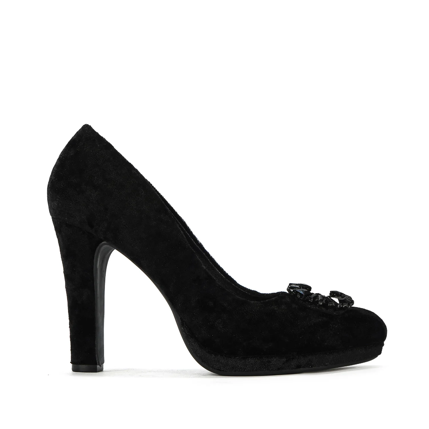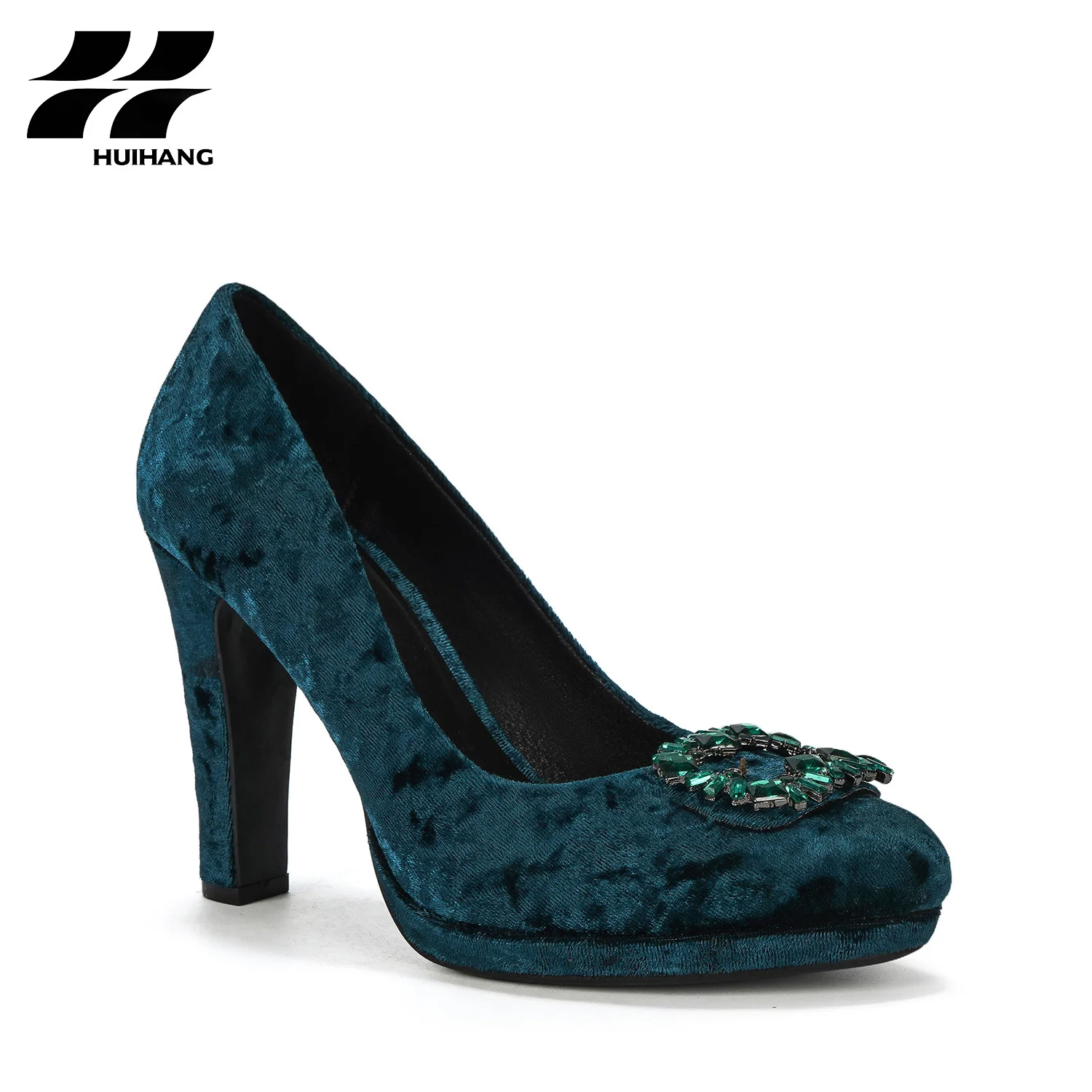 Elegant Women's High - Heel Pumps with Velvet Fabric and Rhinestone Embellishment Comfortable for Females