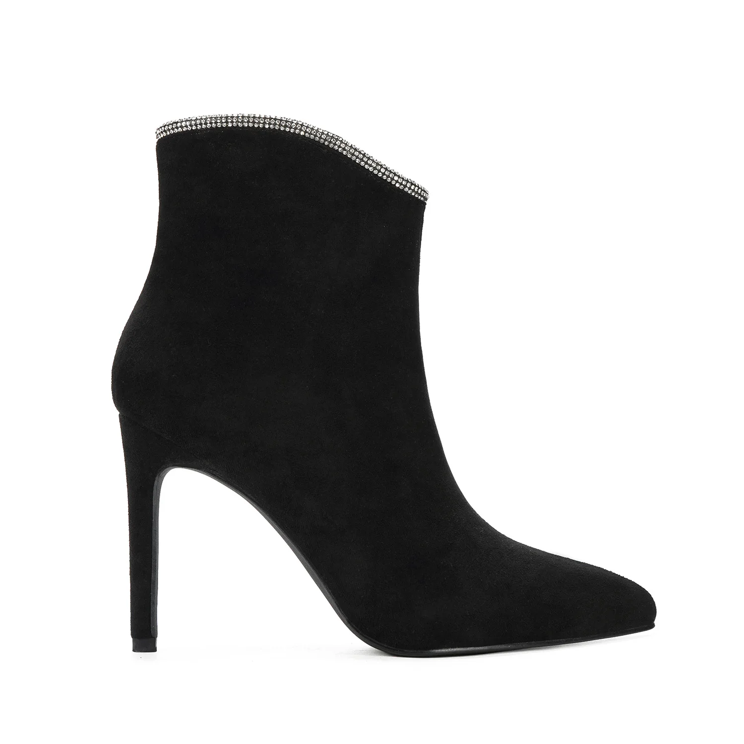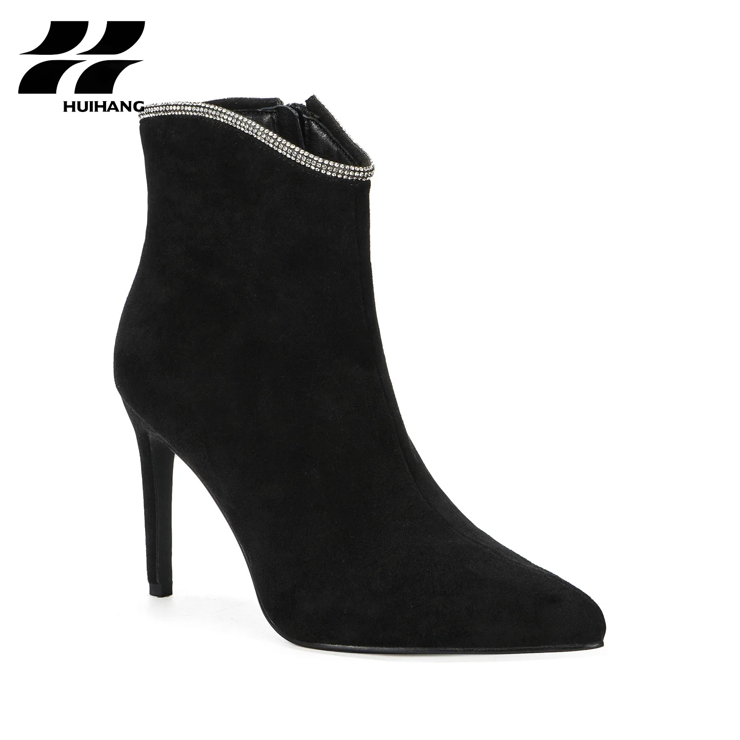 Iconic Women's High-Heel Ankle Boots Winter Solid Pattern Height Increasing with Comfortable Rhinestone Trim for Stylish Wear