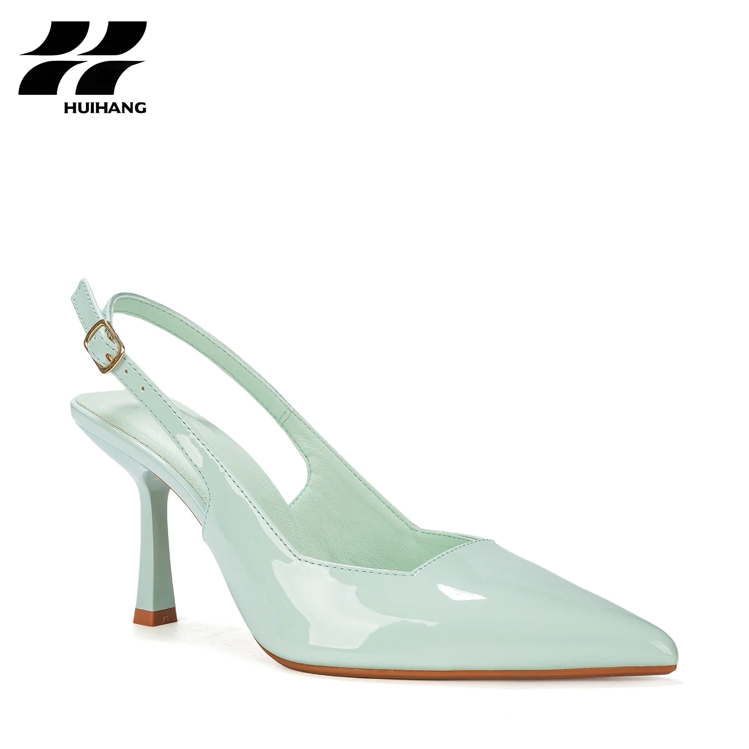 Glam Chic PU Leather Slingback Stiletto Pumps Pointed Toe Evergreen and Hard-Wearing Soft Feature for Summer Occasions