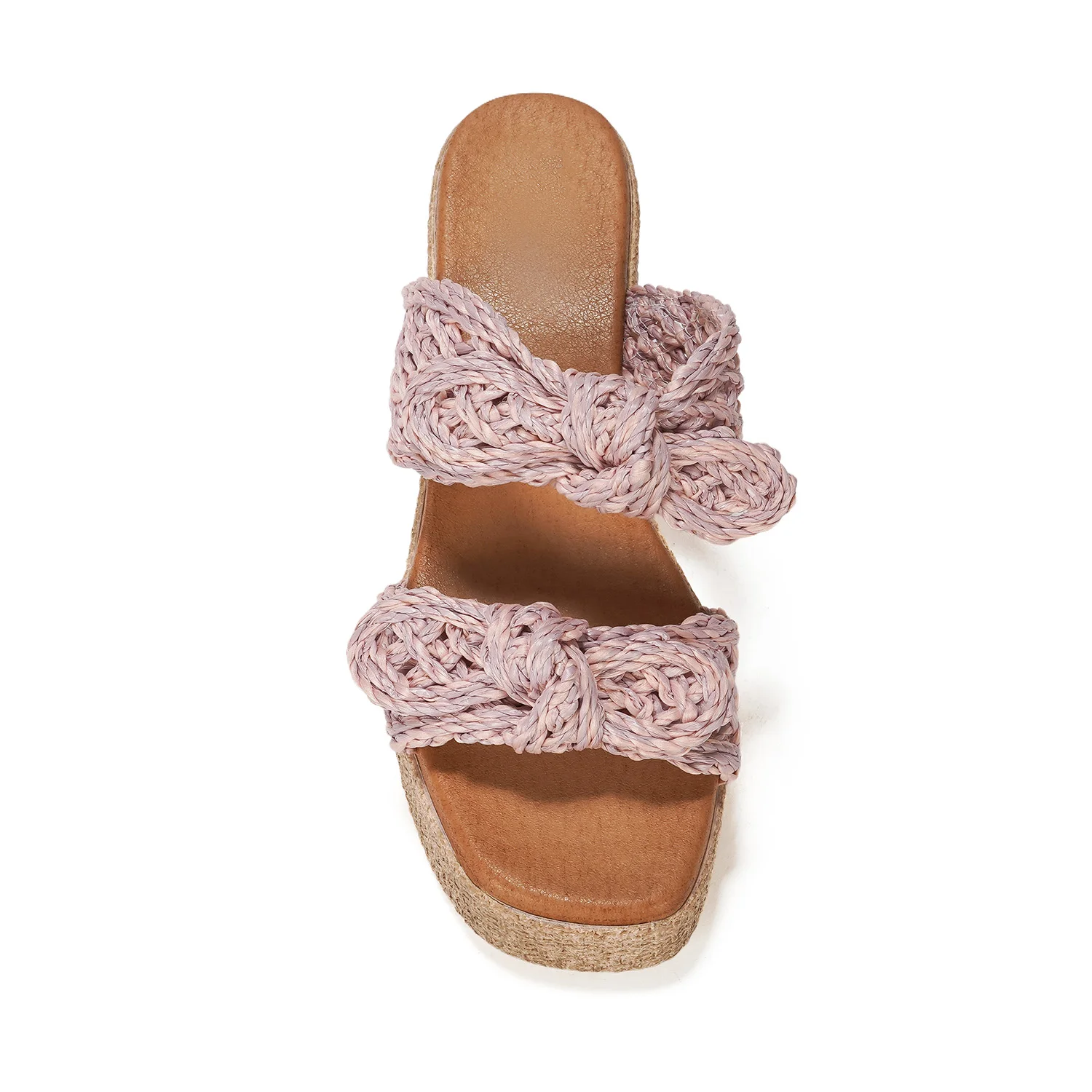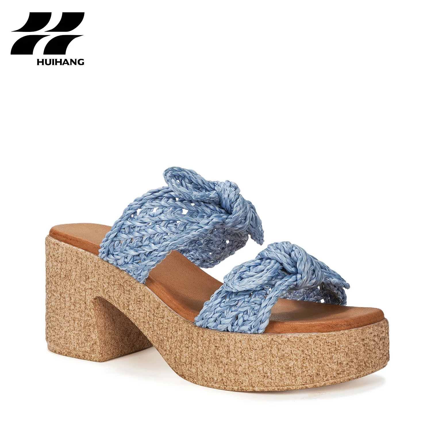 Boho Knitted Bow Strap Platform Slide Sandals Open Toe Height Increasing Waterproof Hard-Wearing for Summer Casual Outings