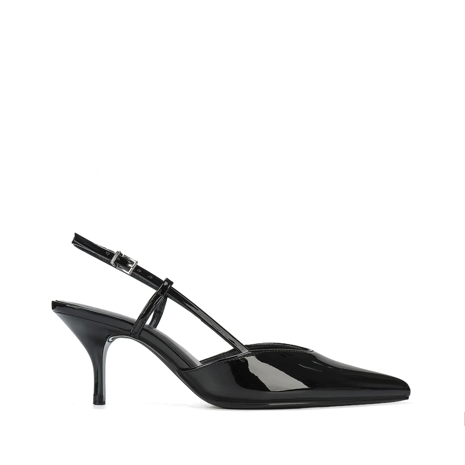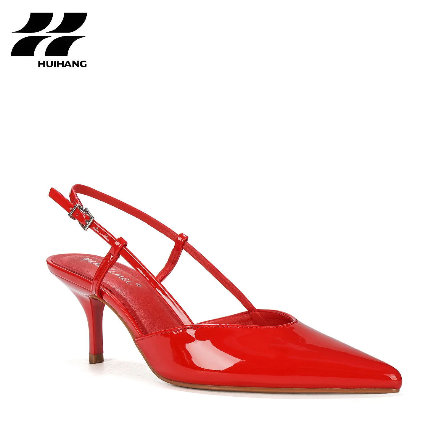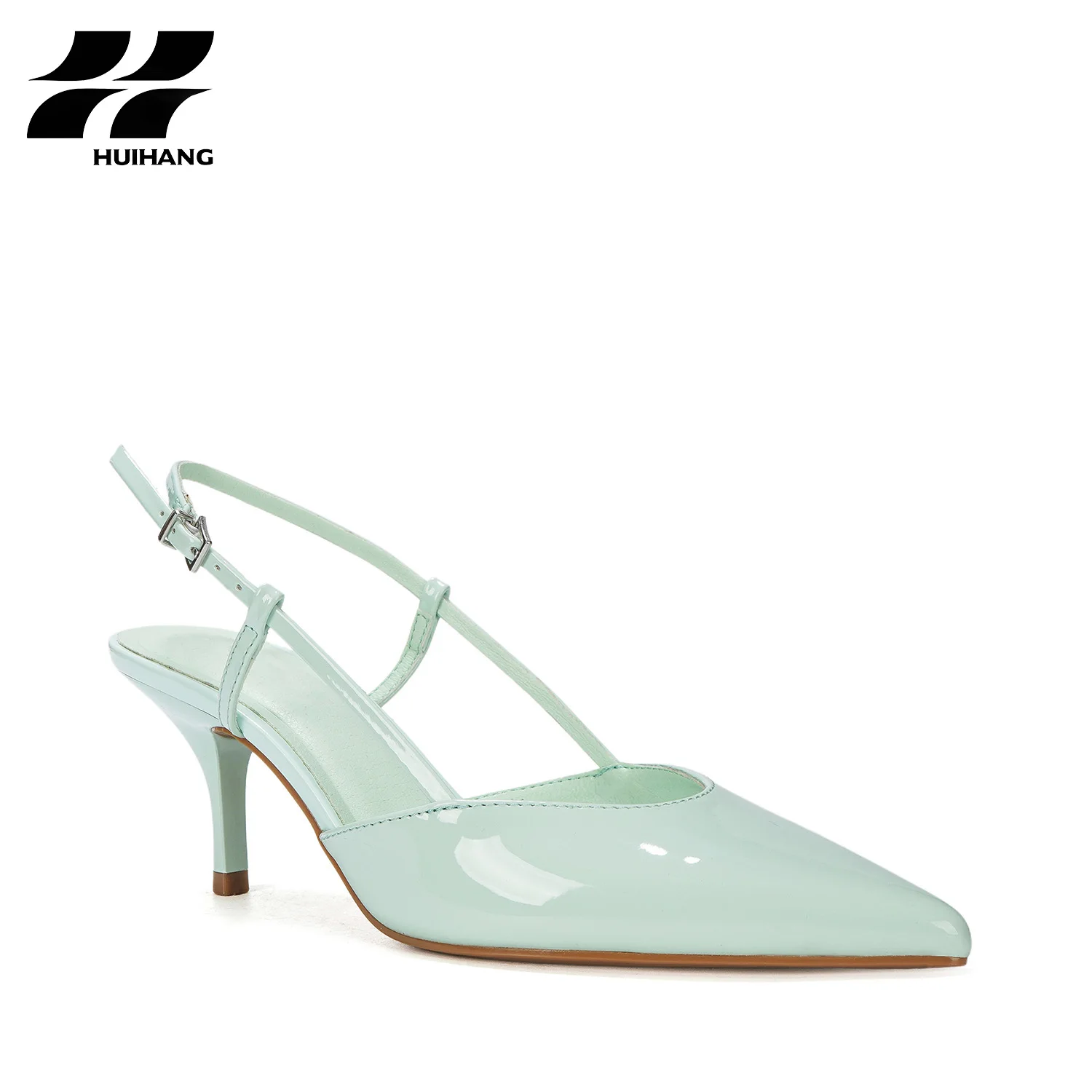 Women's Chic Patent Leather Buckle Slingback Stiletto Heels Pointed Evening Party Footwear Lighting Height Increasing for Summer