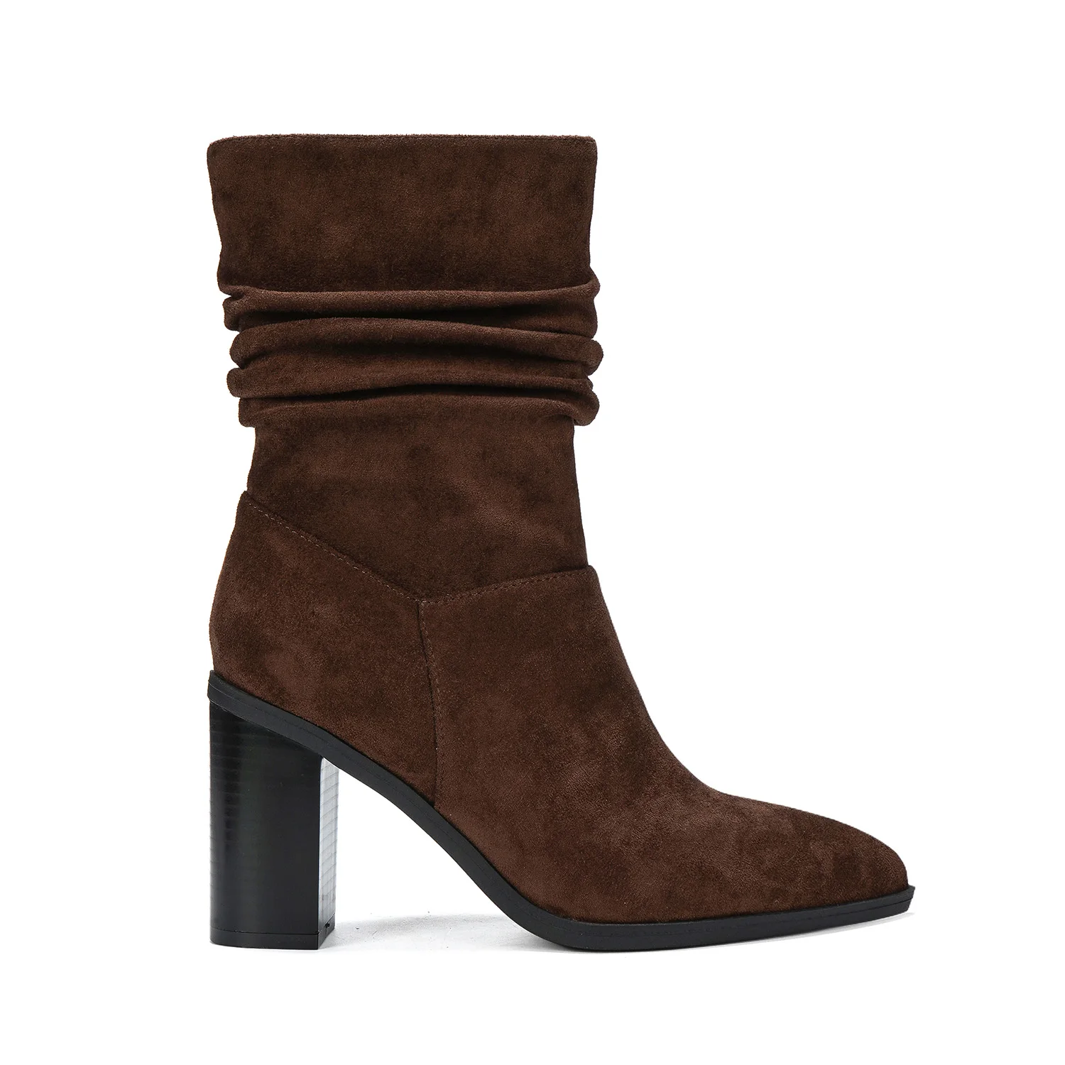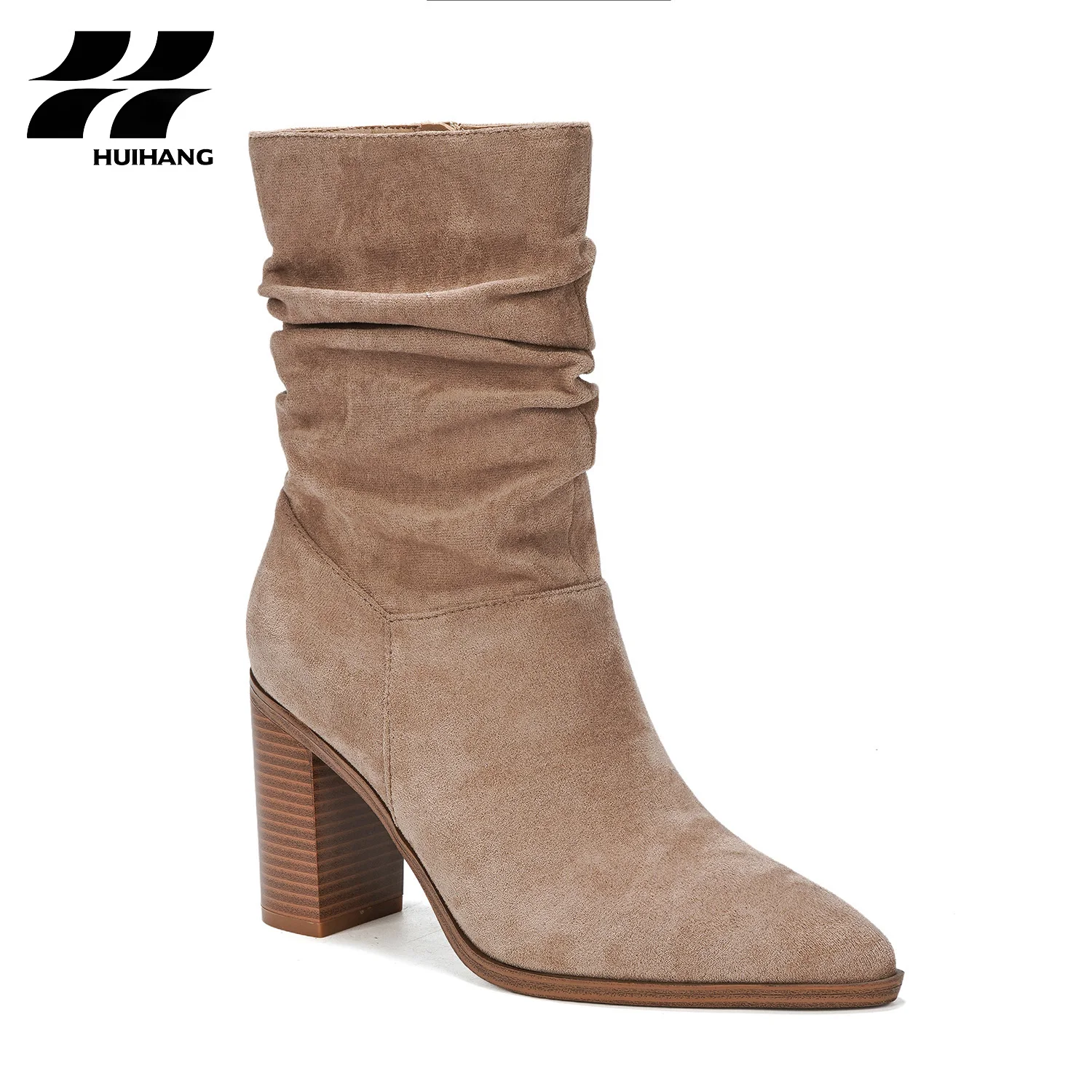 Glamorous Women's Classic Ankle Boots with Pointed Toe and Chunky Heels Zip Closure Comfortable for Autumn and Winter Use