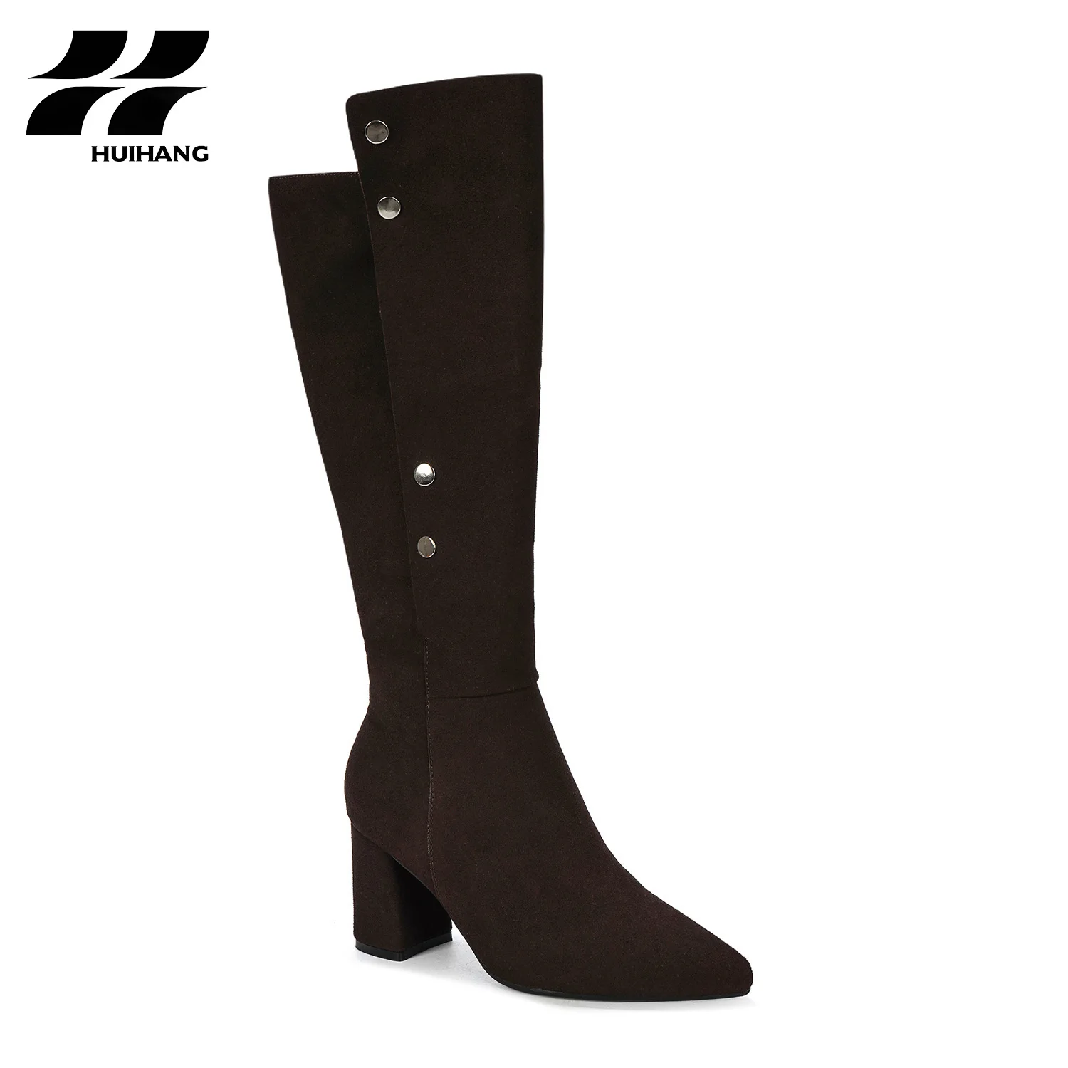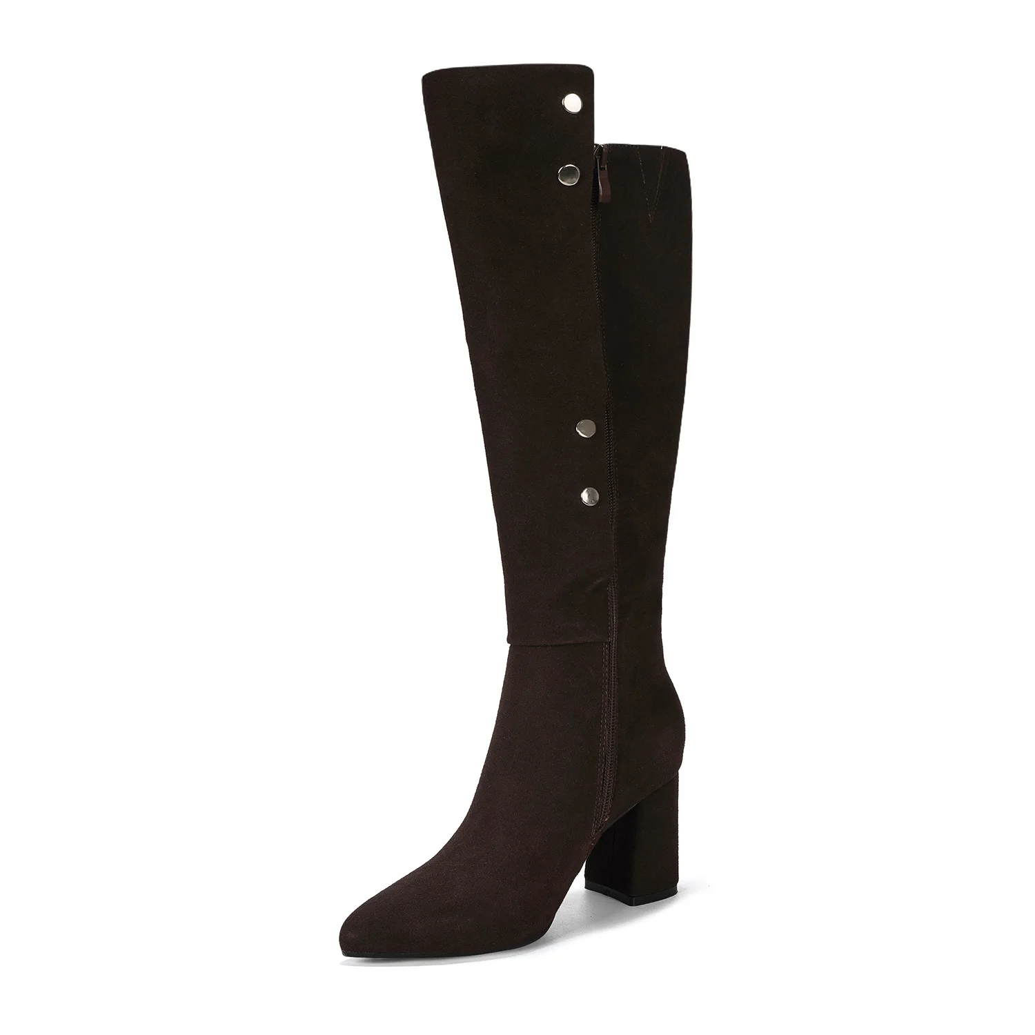 Chunky Heel Women's Winter Calf-Length Boots Metallic Buttons Decorated Comfortable Pointed Toe Design Solid for Autumn Winter
