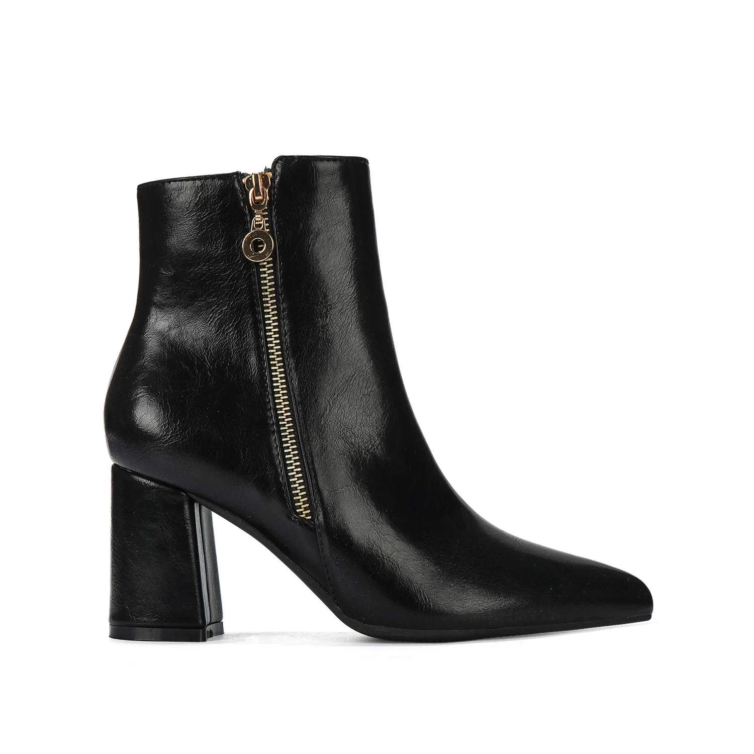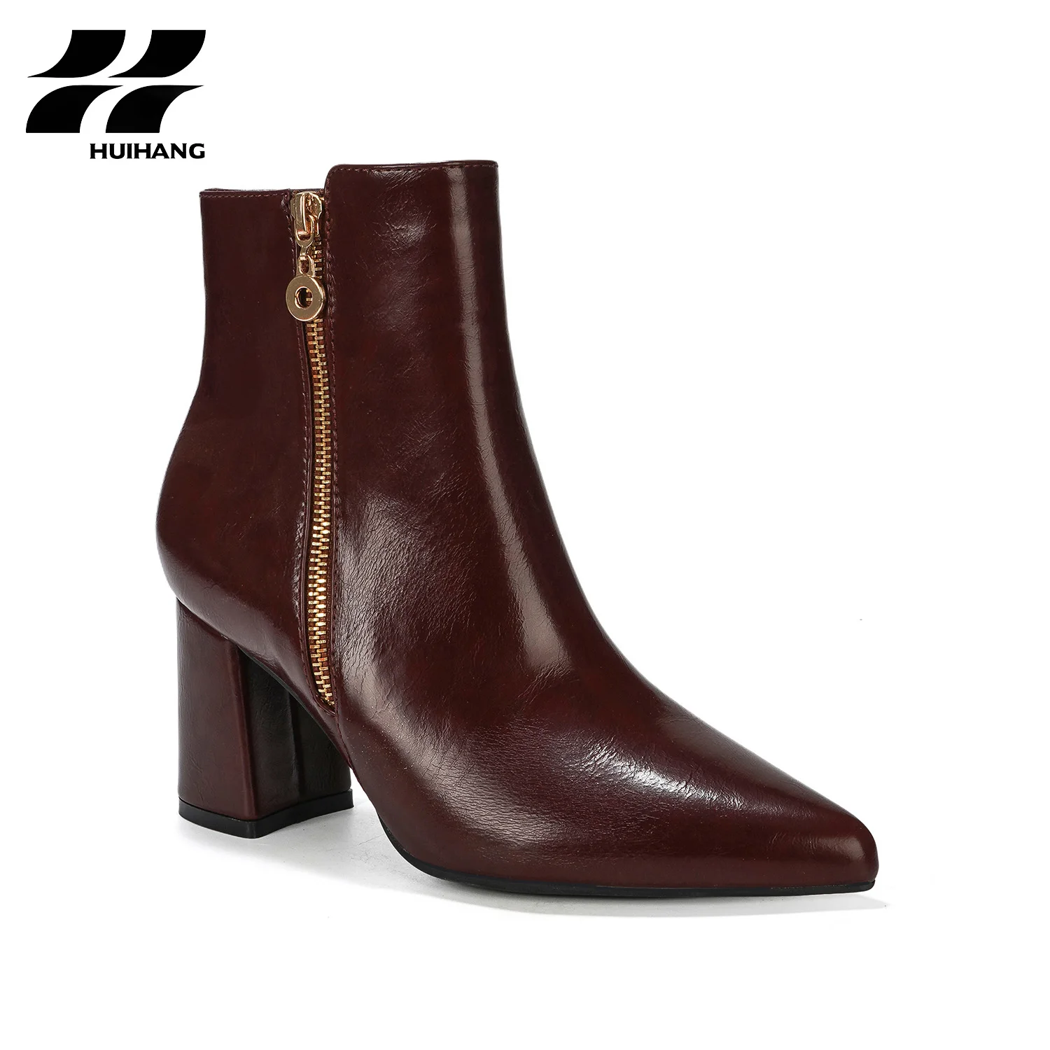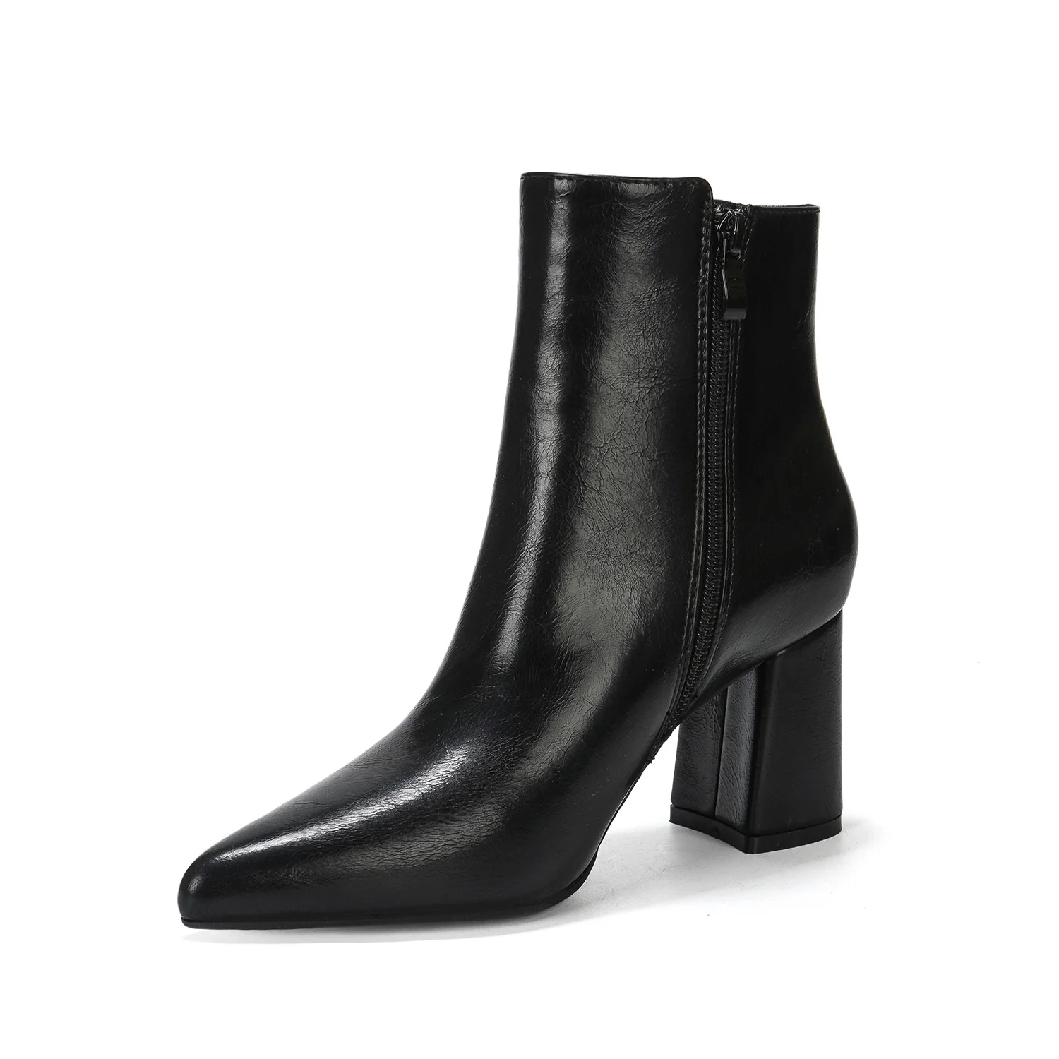 Classic Solid Women's Chic PU Leather Block Heel Ankle Boots with Zip Casual Party Footwear for Women