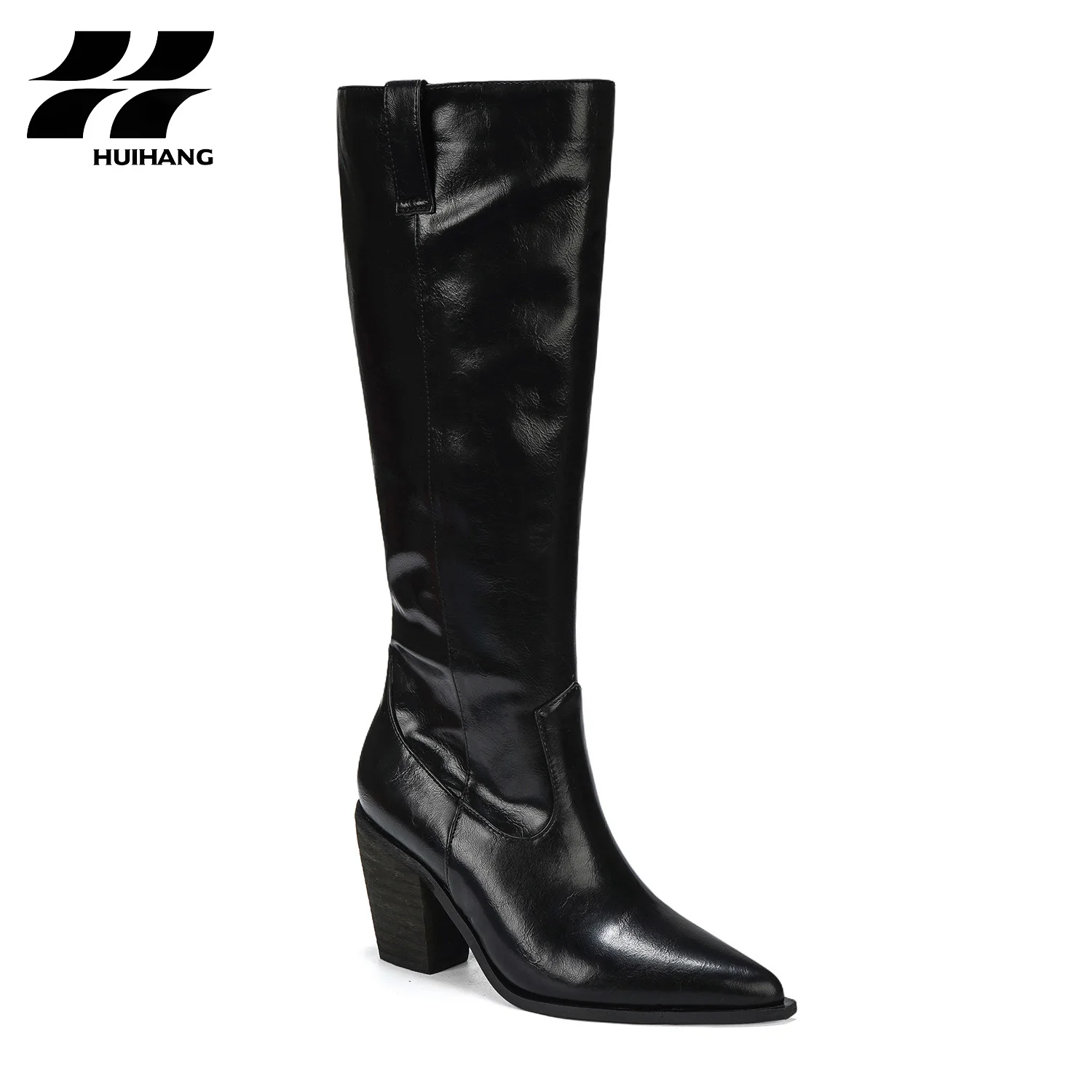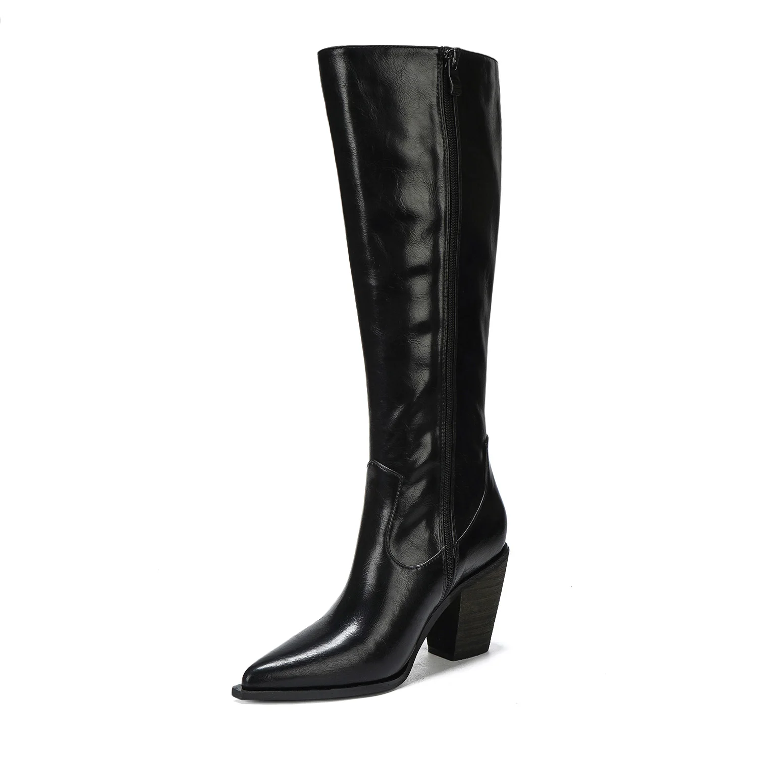 Classic Design Women's High-Heel Knee-High Boots Comfortable Crinkled Metallic Upper Height Increasing Feature Solid for Winter