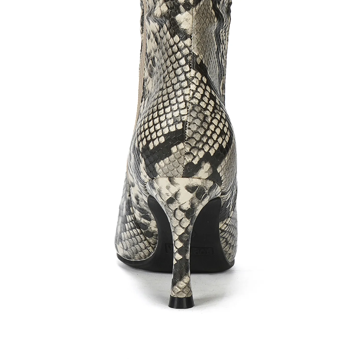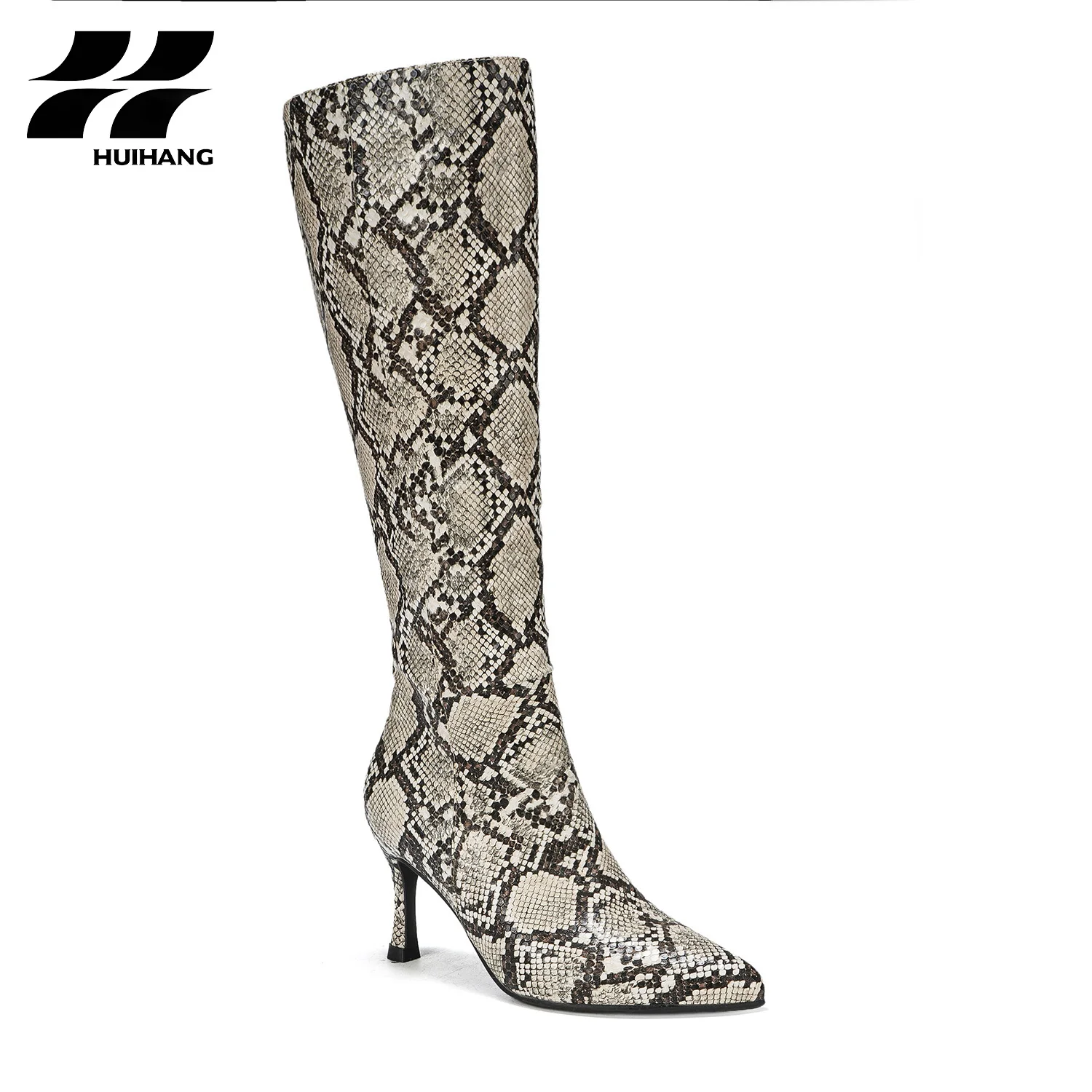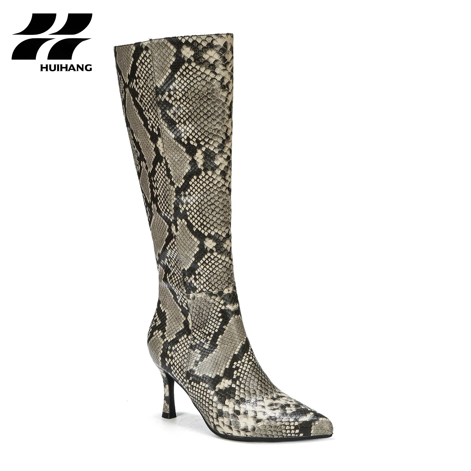 Chic Stylish High-Heel Knee-High Boots Avant-Garde Snake Print Design for Comfortable Winter Wear Features Height Increasing