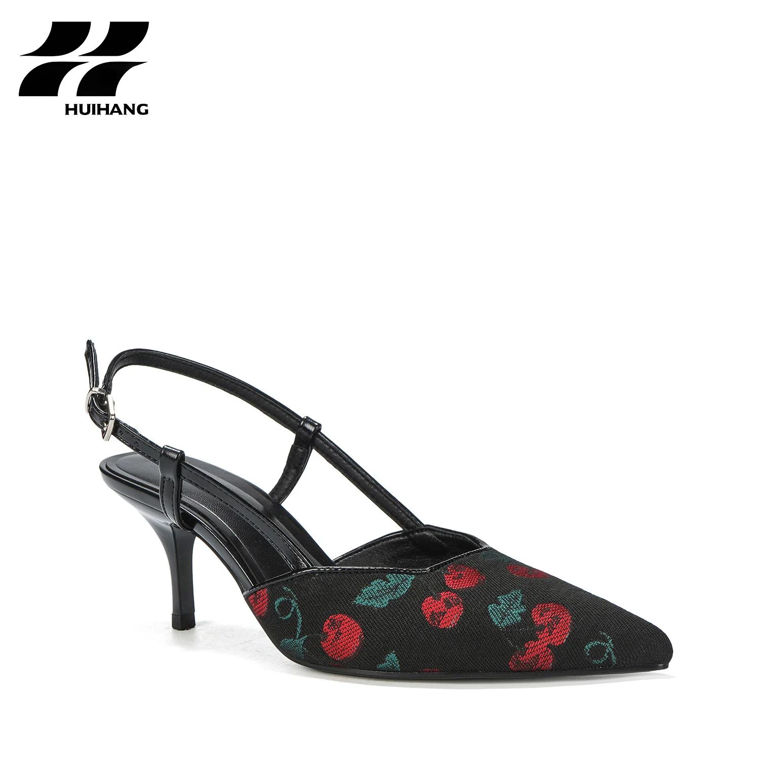 Women's Stylish Cherry Print Slingback Pumps High-Heel Pointed Toe Summer Comfortable Wear Hard-Wearing Soft Features Slip-On