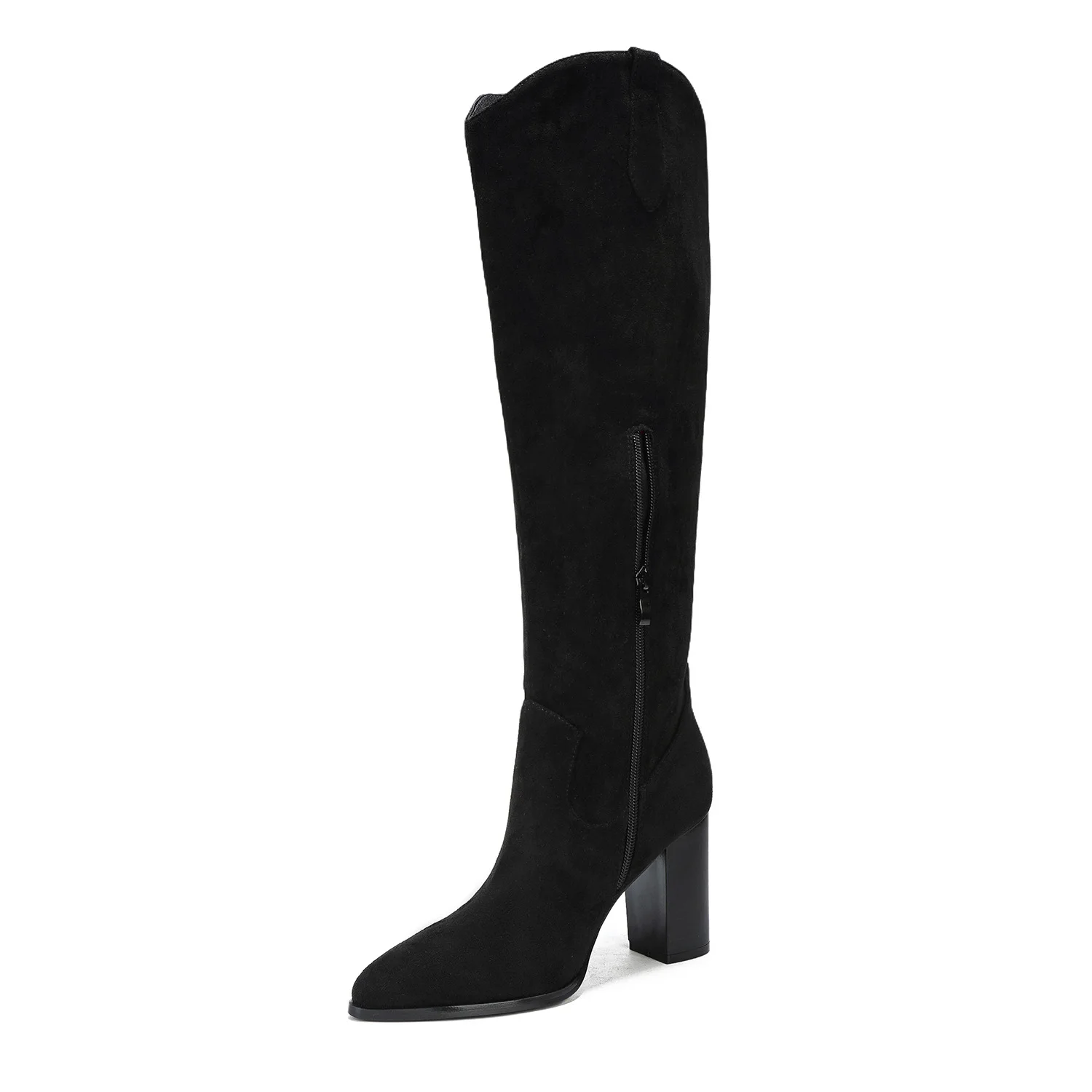 Women's Trendy Fall/Winter Knee-High Suede Western Boots Block Heel Casual & Party Footwear