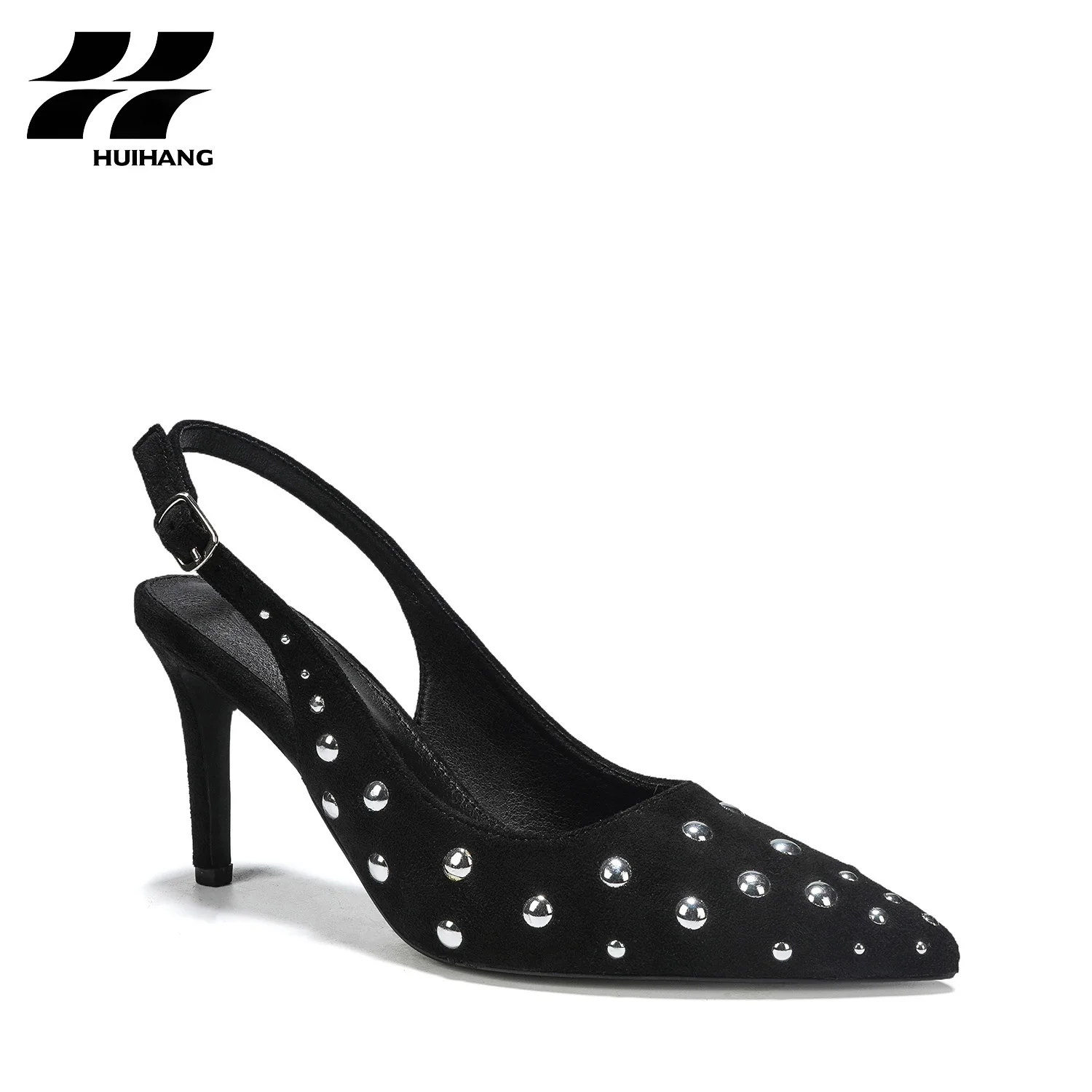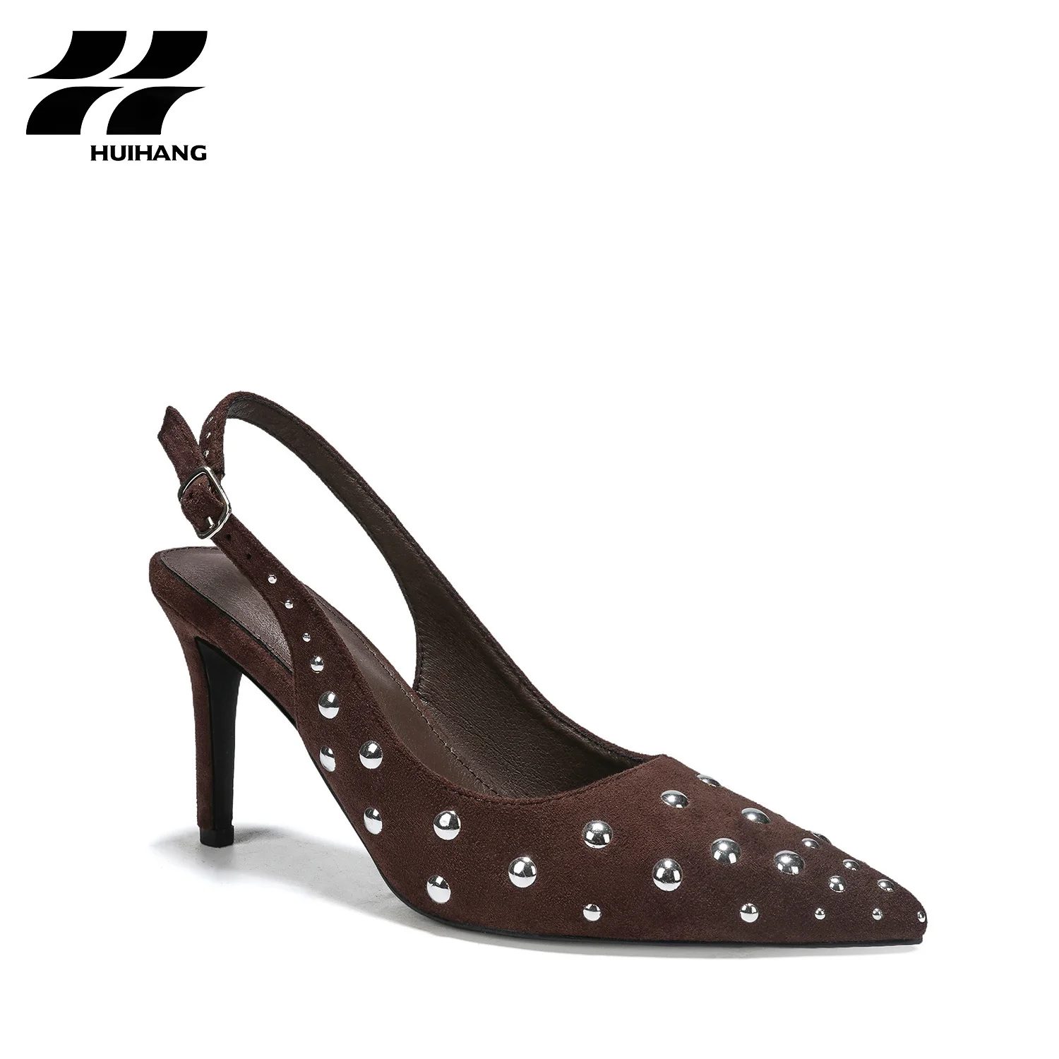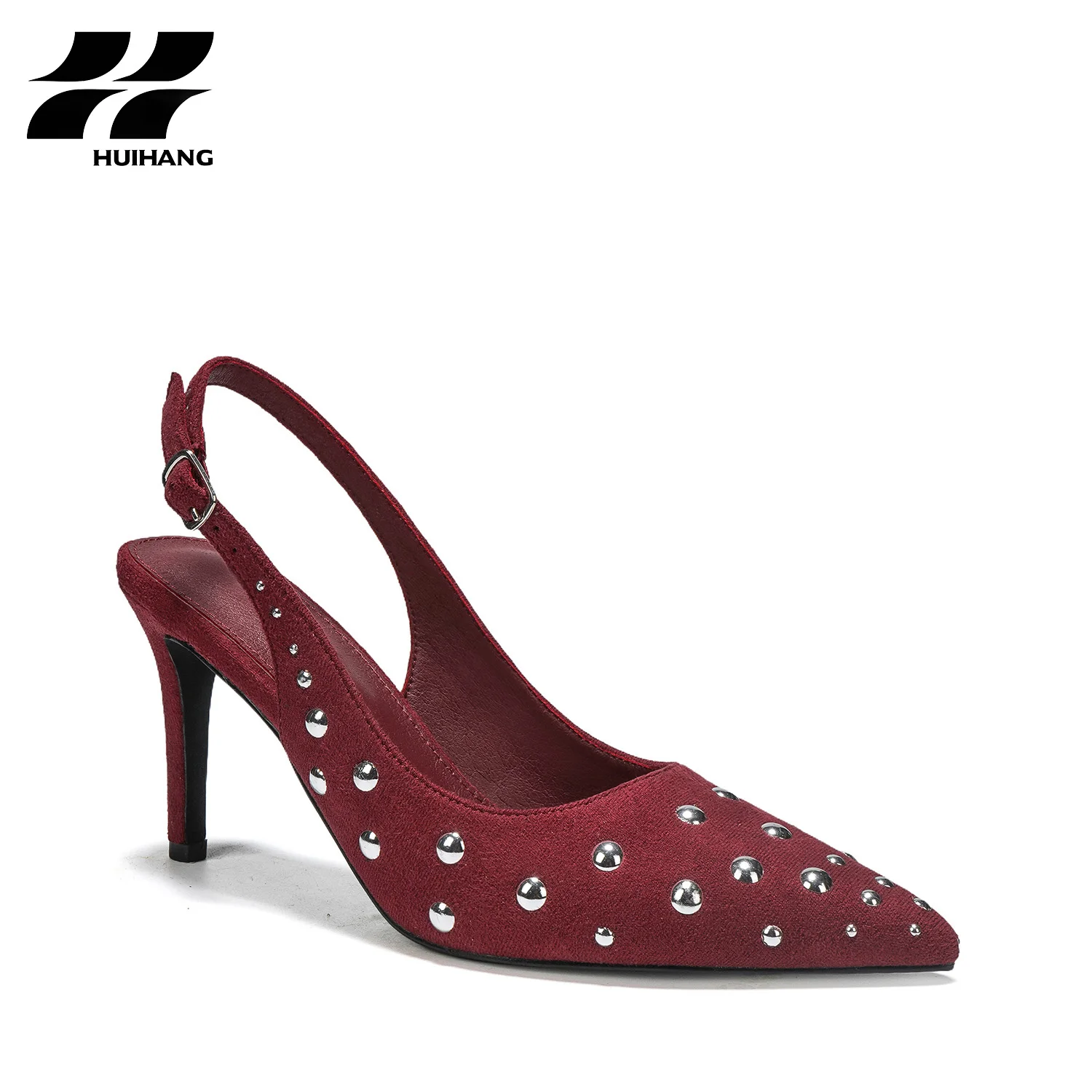 Glamorous Summer Fashion Trend Comfortable Slip-On Pointed-Toe High Heel Pumps Stud Decorations Ankle Strap Design for All