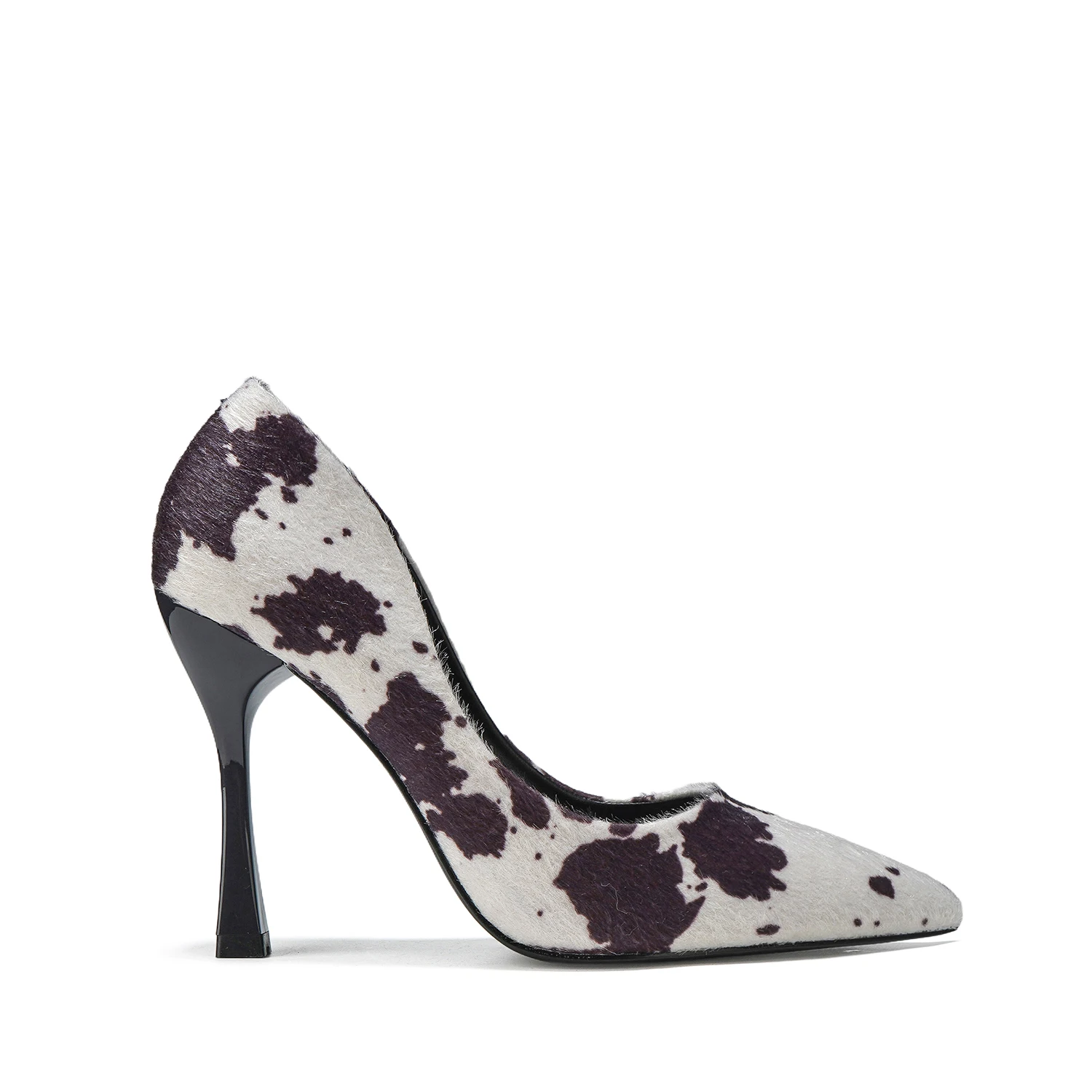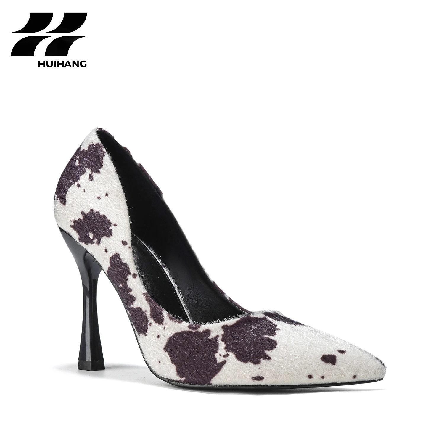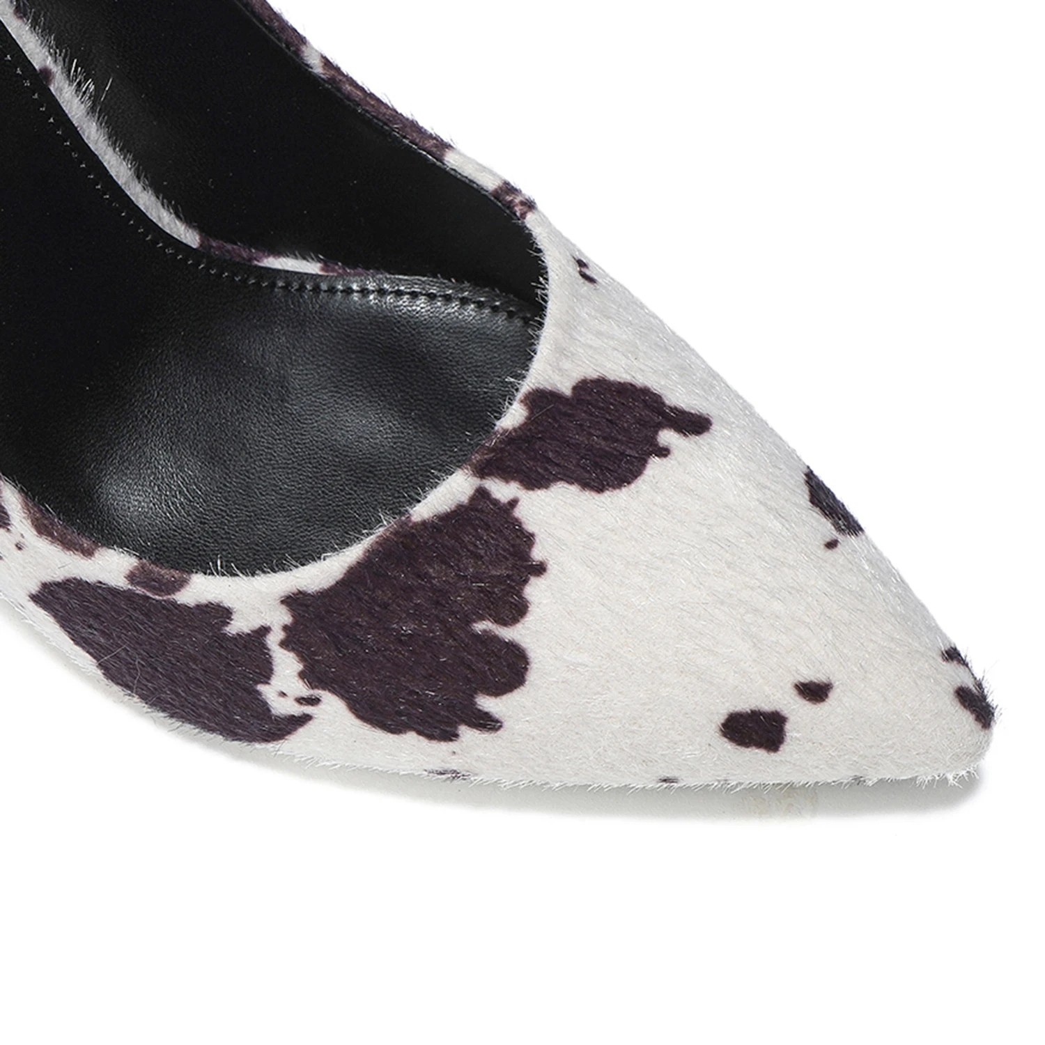Elegant Cow Print High-Heel Pumps Slip-On Closure Comfortable Pointed-Toe Design Fashionable Fabric Upper for Summer Parties