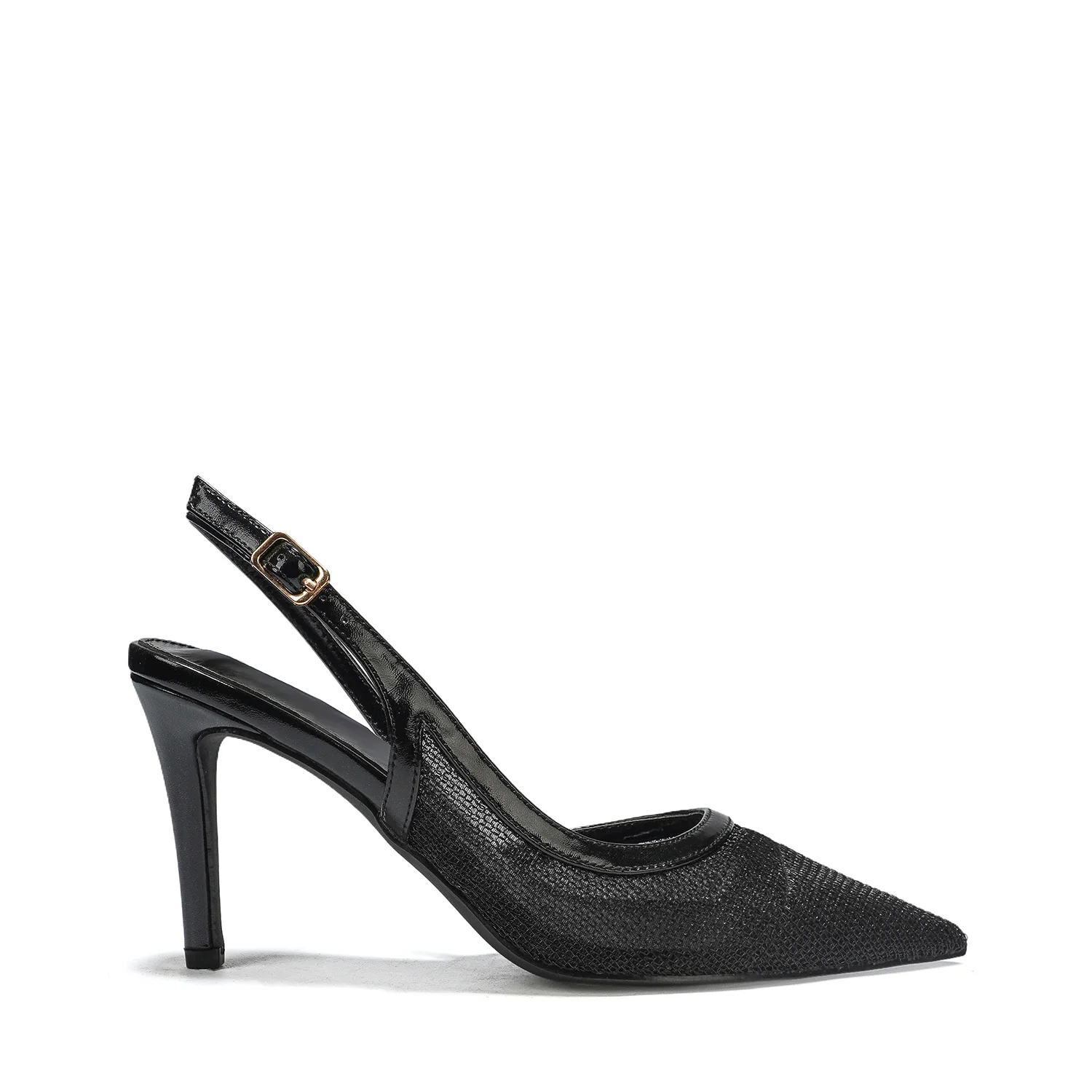 Glamorous Summer Pumps with Ankle Strap High Heel and Mesh Design Comfortable Pointed-Toe Soft and Lightweight Solid Pattern