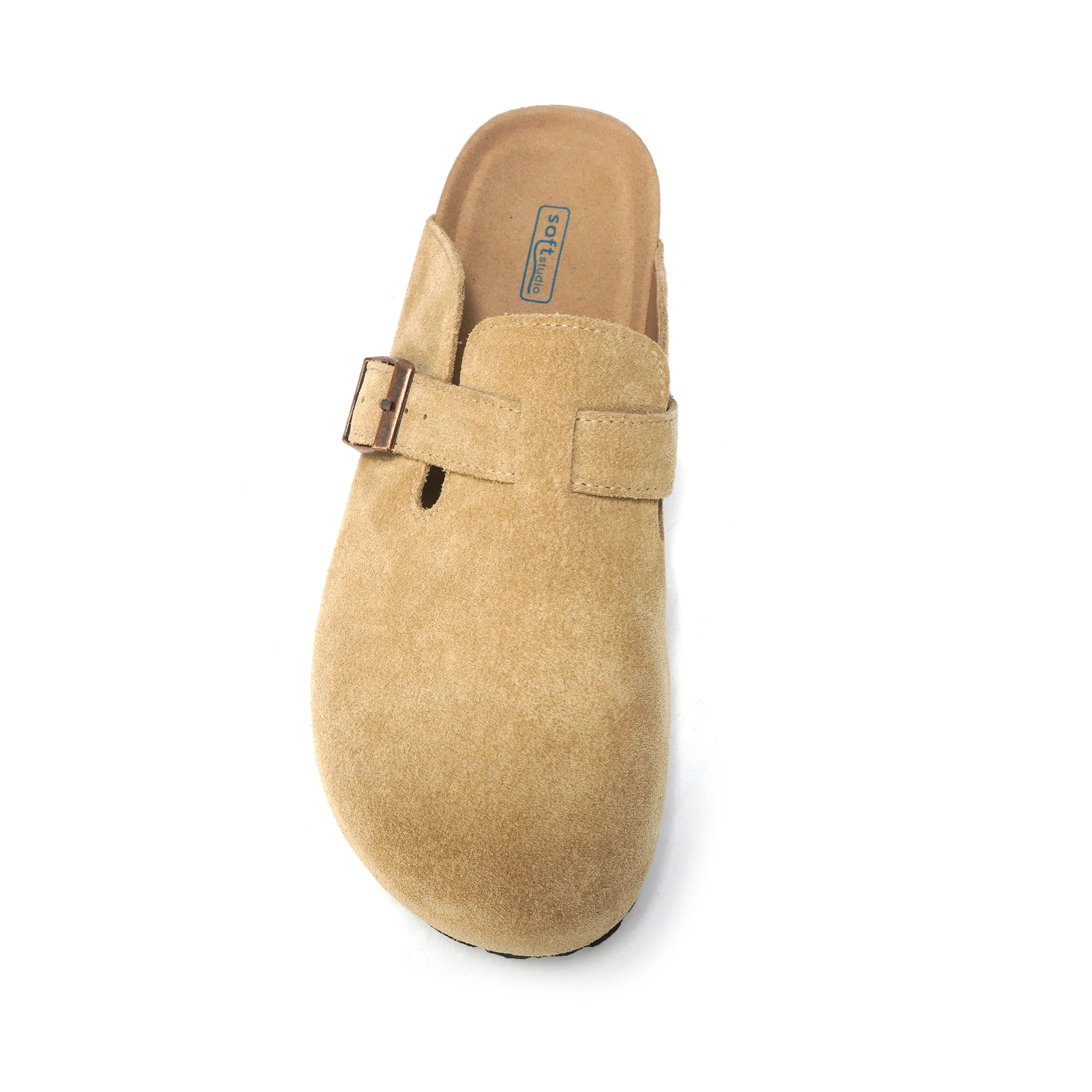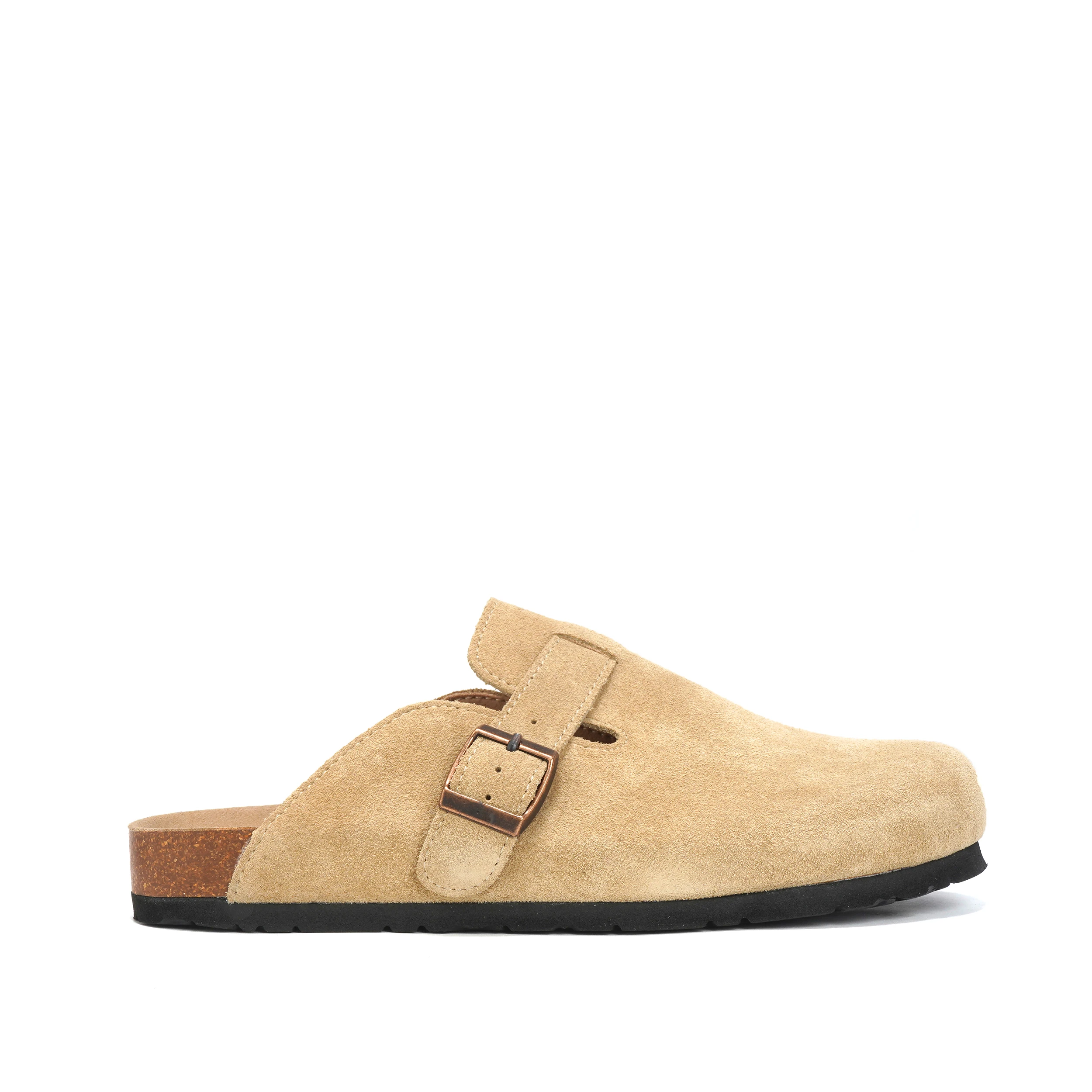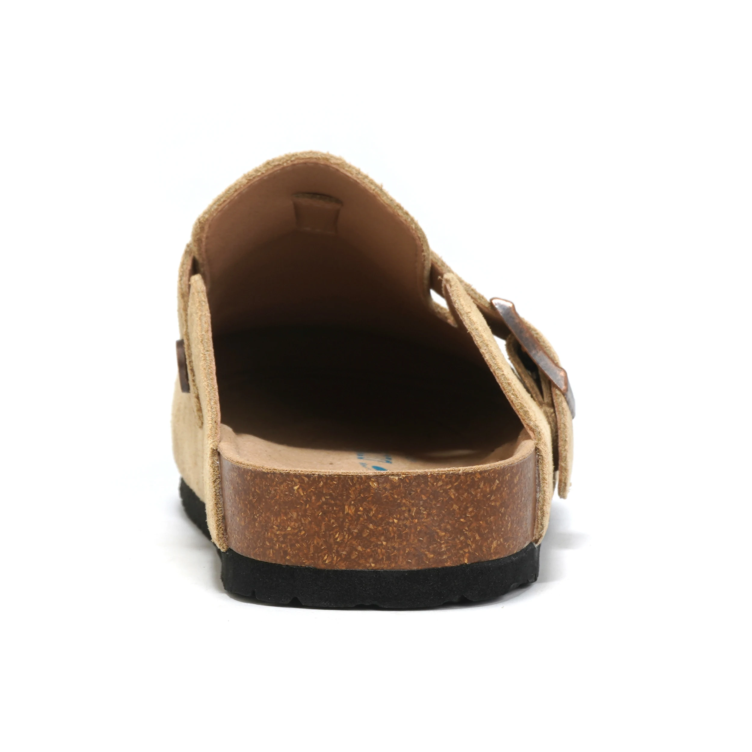 Spring & Summer Slip-On Nubuck Mules, Round Toe with Buckle Decoration, Rubber Outsole