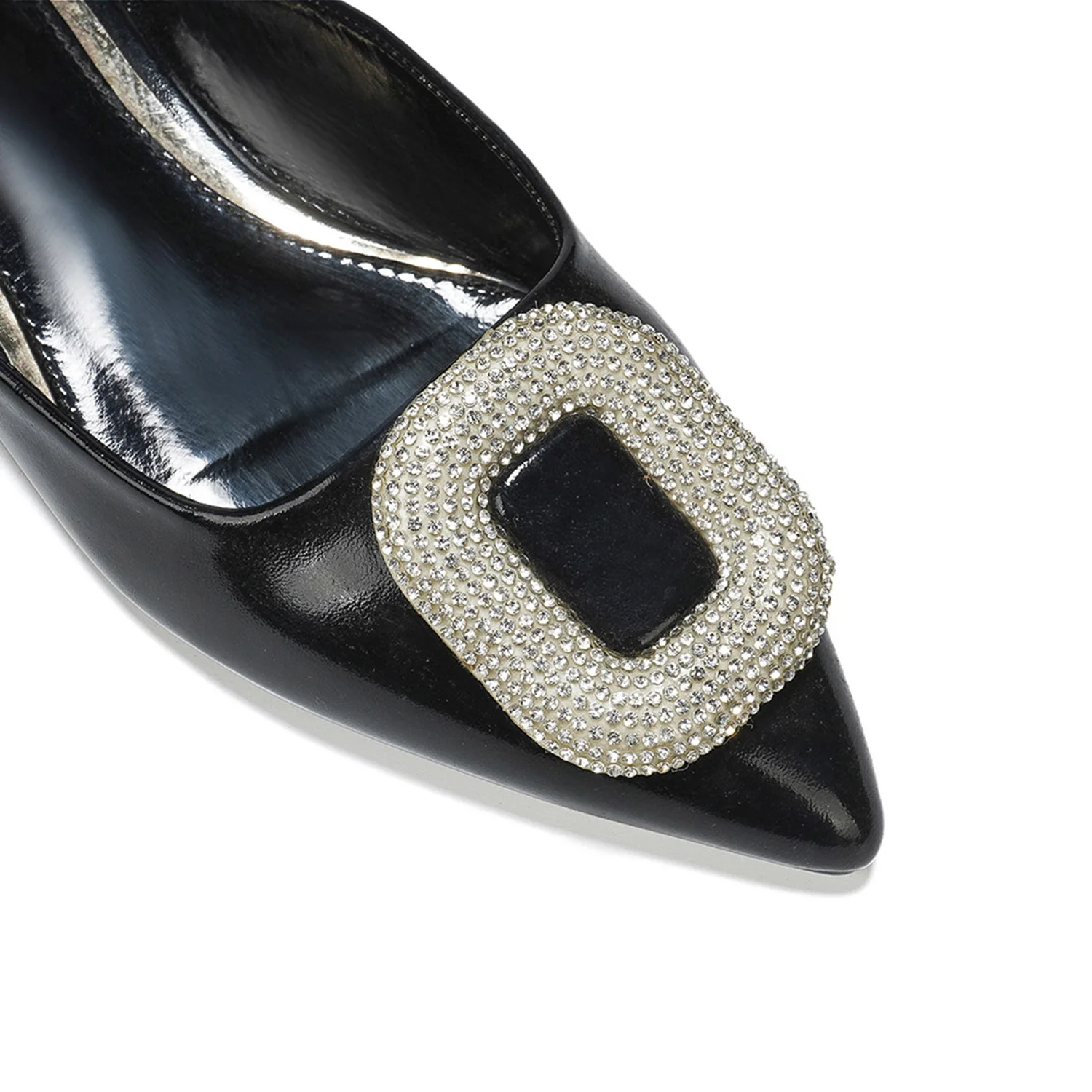 Glamorous Women's Metallic Slingback Flats Rhinestone Buckle Comfortable Flexible Pointed Toe Party Evening Dress Shoes-Slip-On