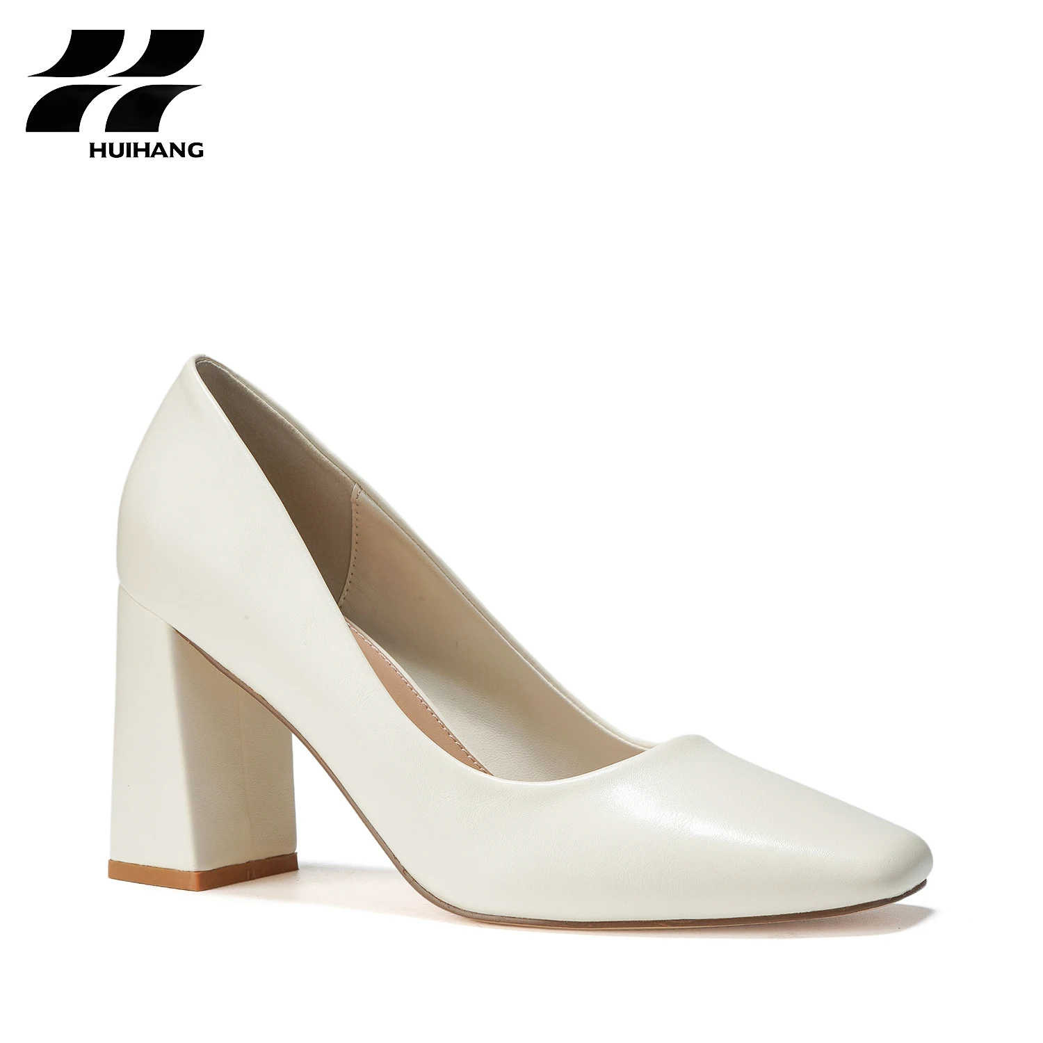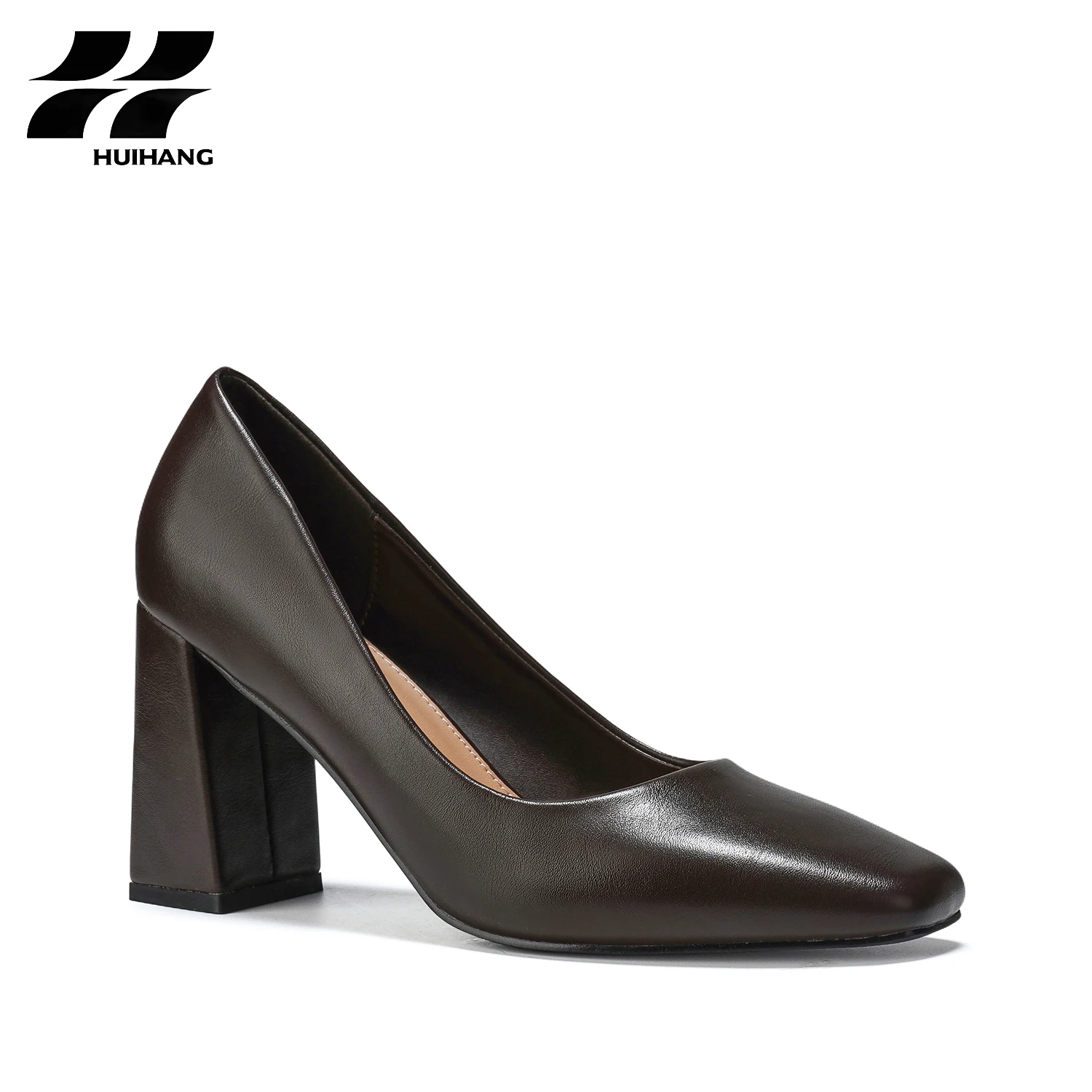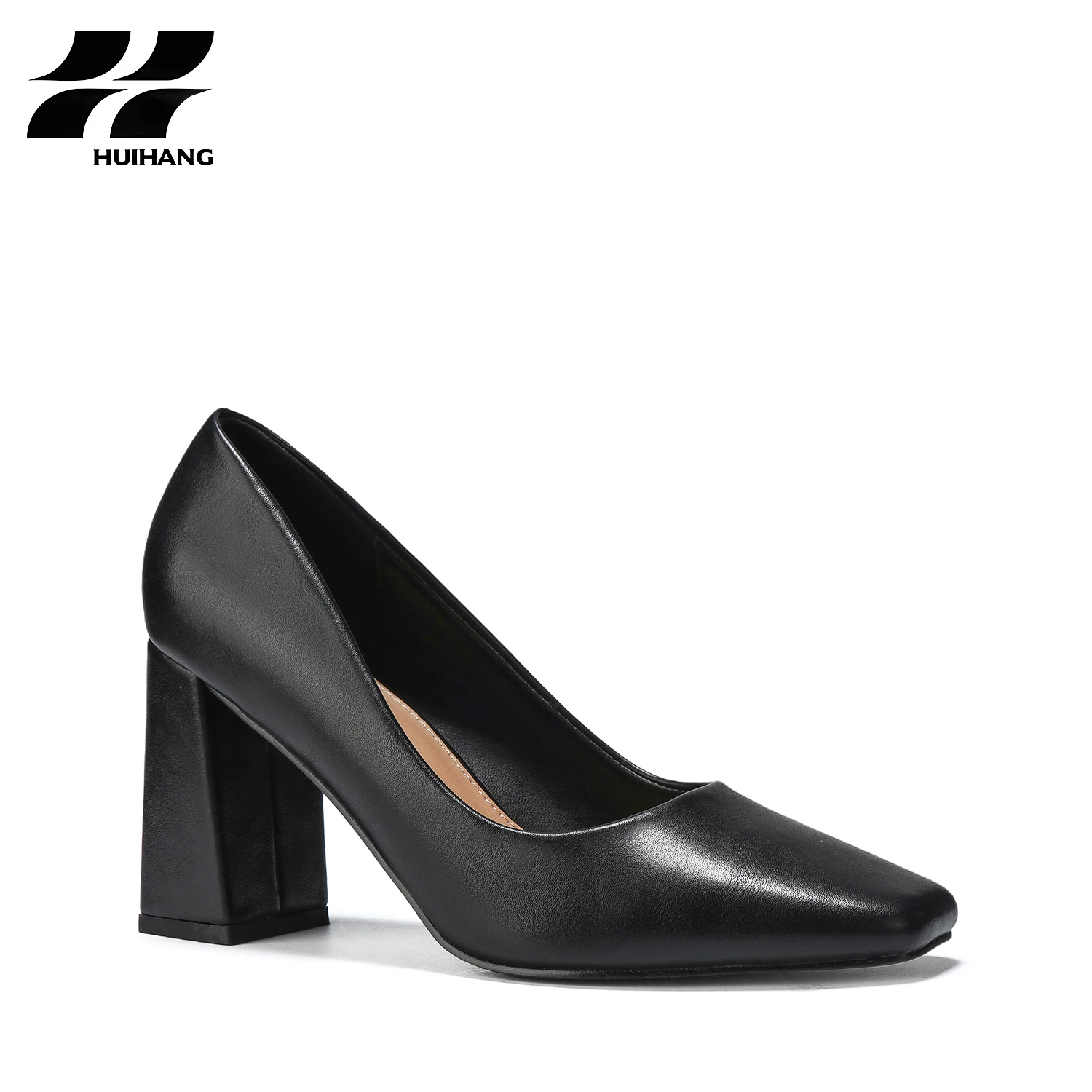 Sophisticated Pu Leather Block Heel Pumps Slip-On Comfortable Versatile Square Toe for Business Wear Formal Soft Flexible Solid