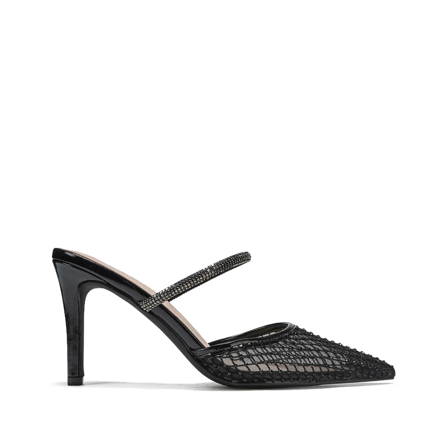Charming Women's High - Heel Sandals with Mesh and Beaded Decoration and Embellished Straps for Stylish and Comfortable Wear