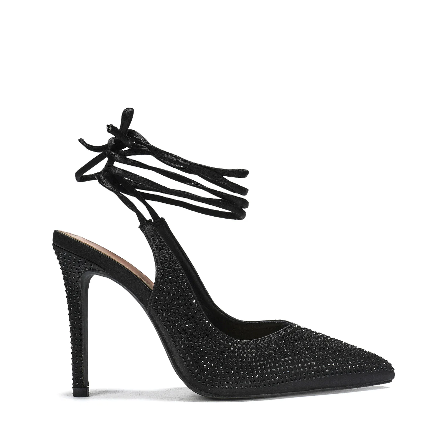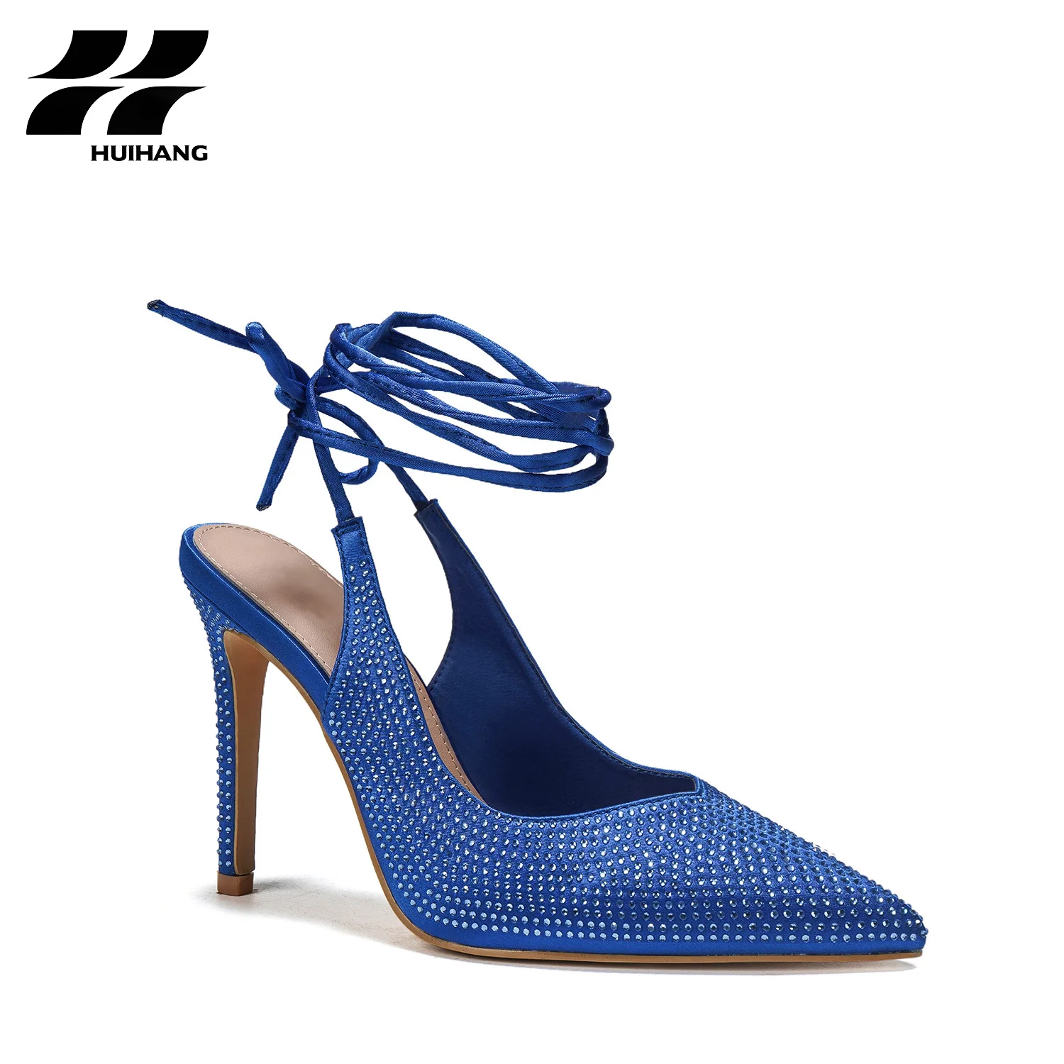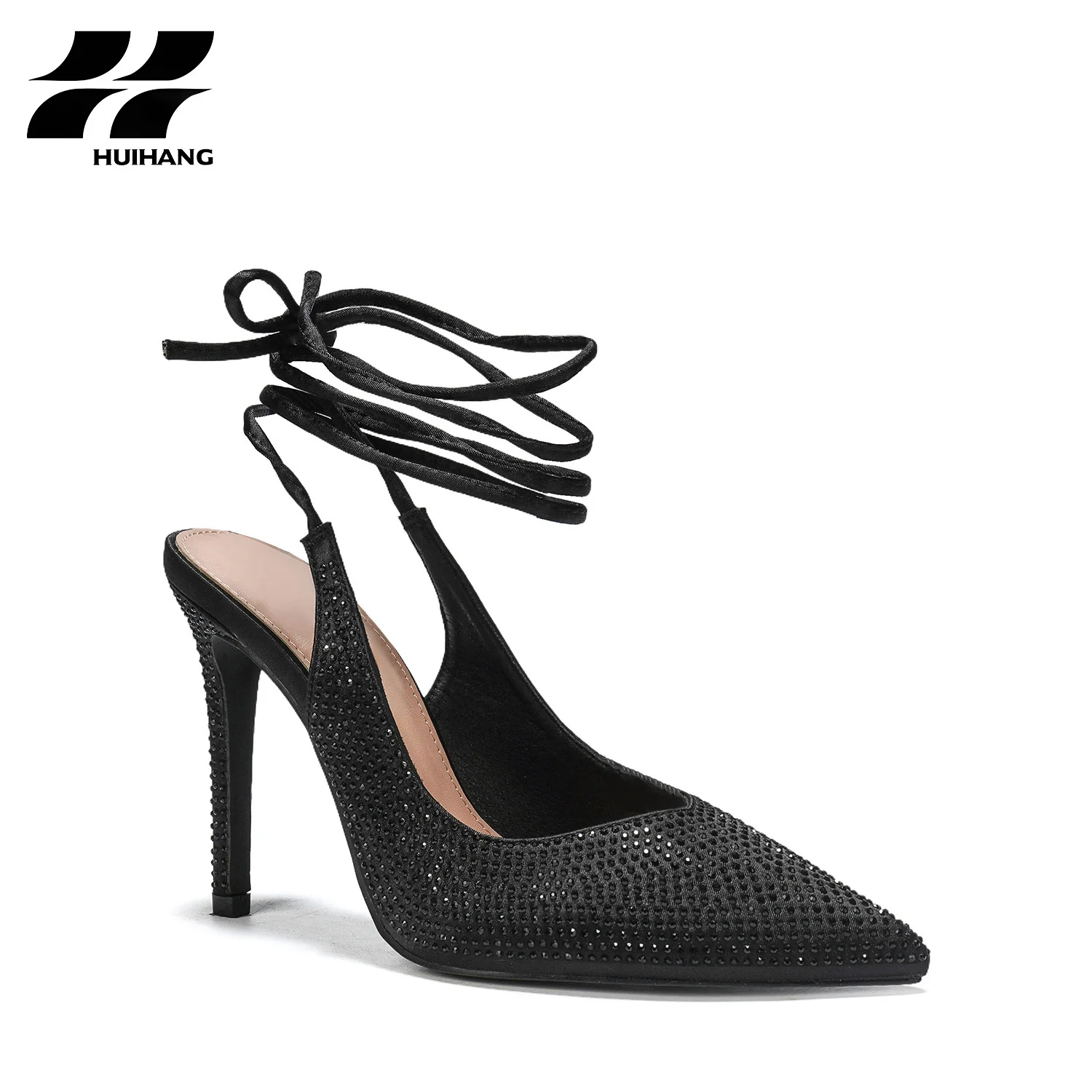 Dazzling Rhinestone Embellished Slip-On High Heel Shoes Comfortable Pointed-Toe Lace up Design for Parties Fashion Trend