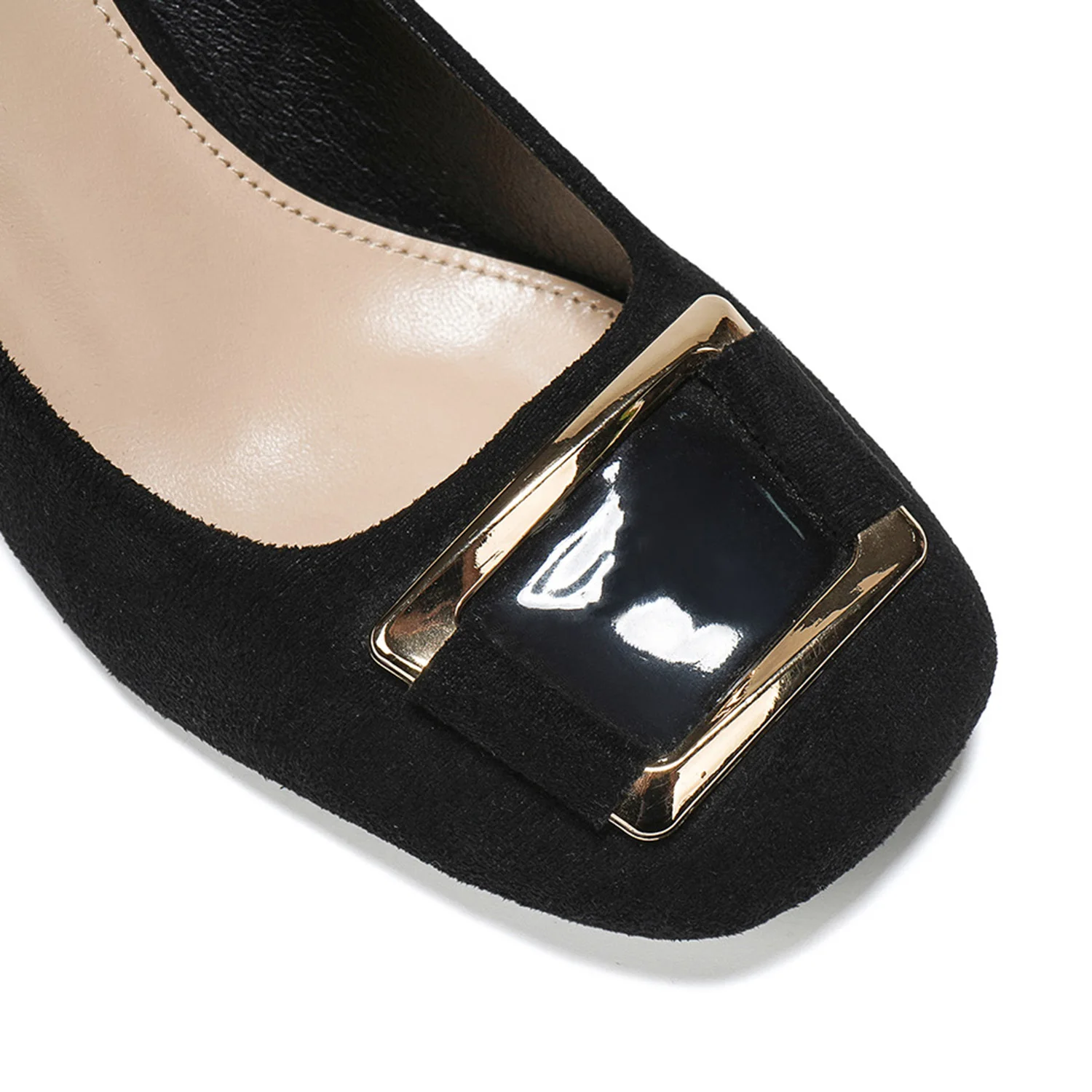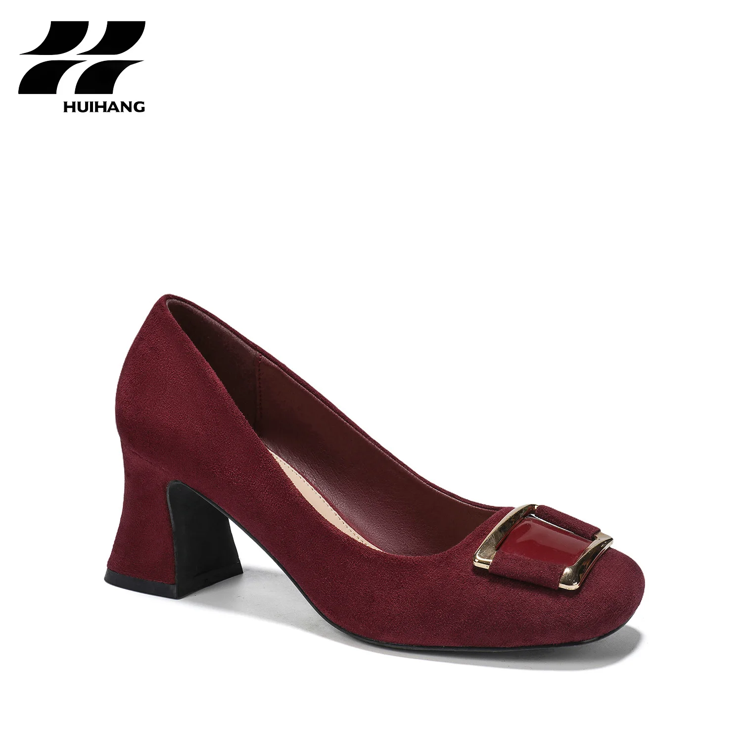 Chic Women's Formal Suede Pumps Comfortable Block-Heel Metal Buckle Round-Toe Slip-On Square Heel Party & Evening Dress Shoes