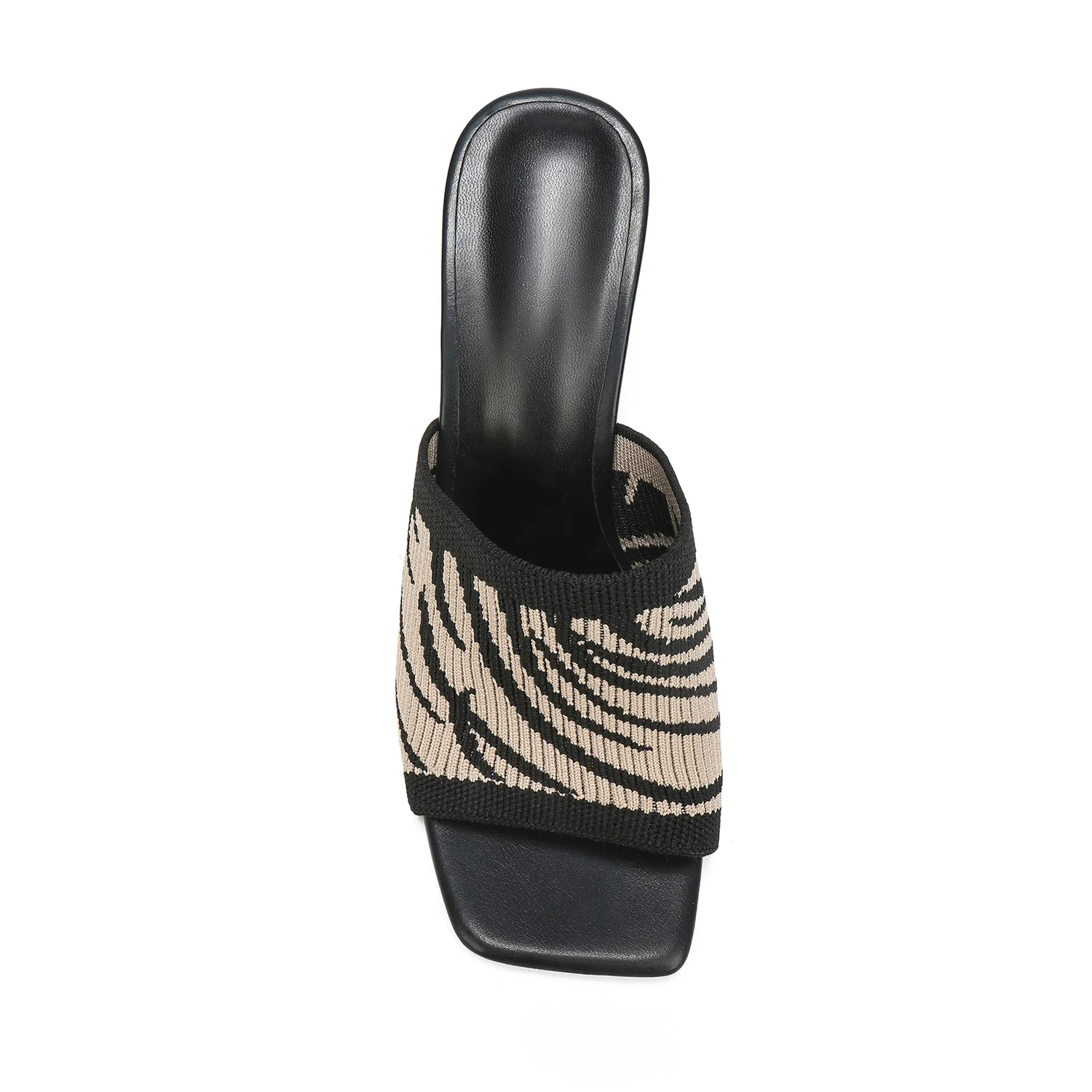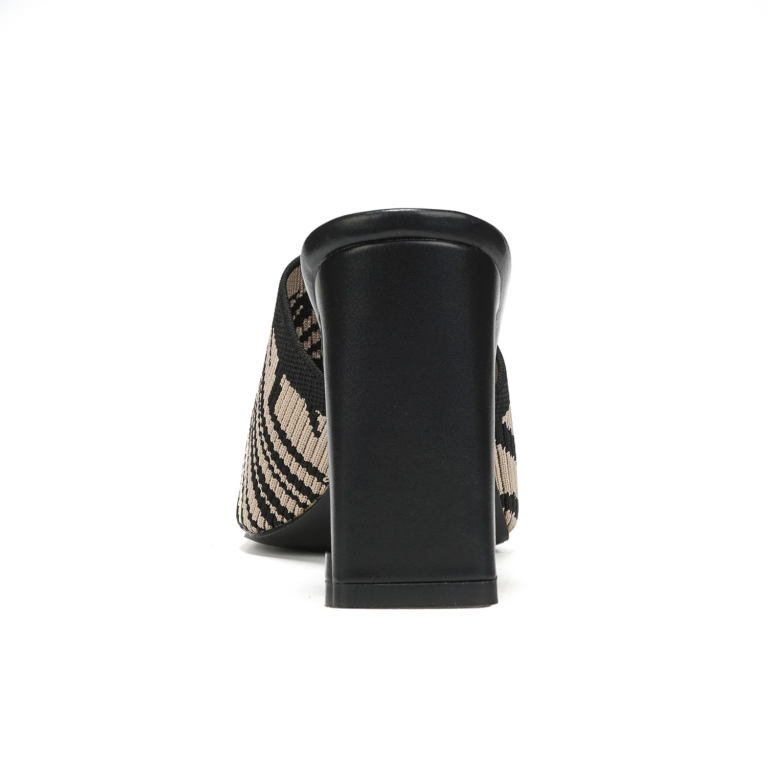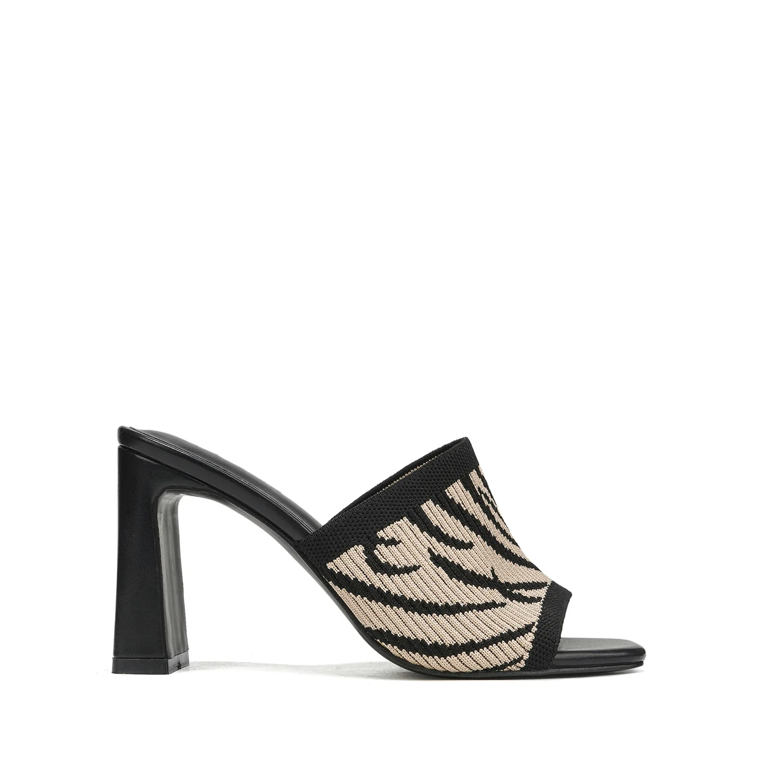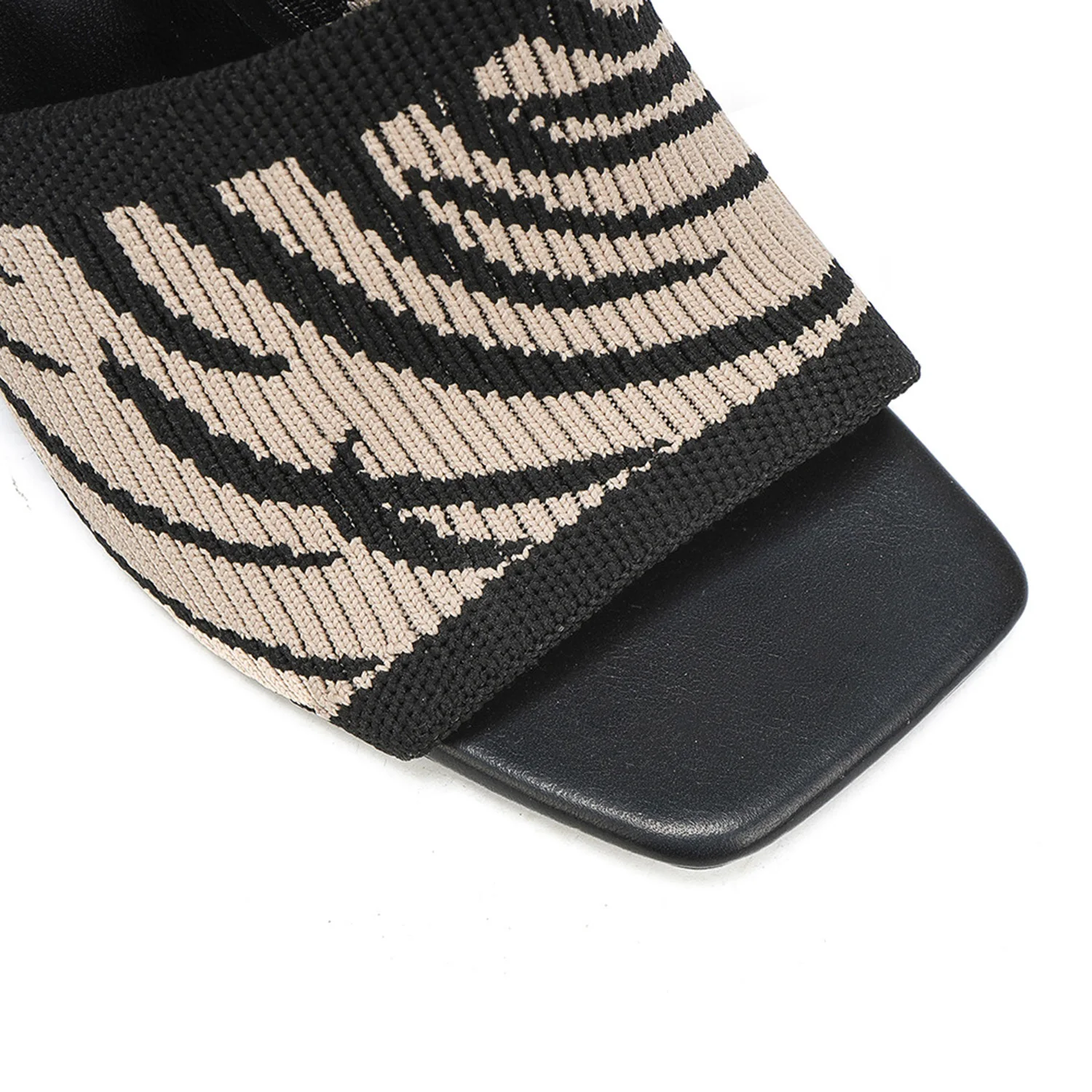 Women's Trendy Summer Block-Heel Mules Knit Zebra-Print Sandals Hard-Wearing Square Toe Slip-On for Casual Party Footwear
