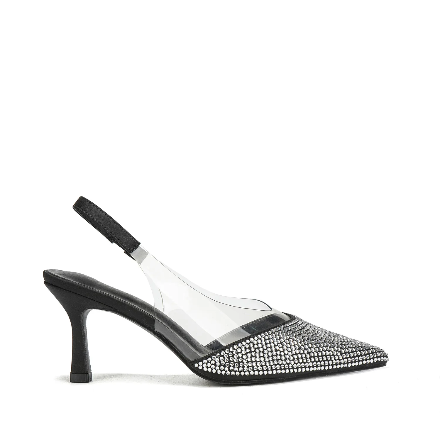 Women's Trendy Summer Party Evening Wedding Shoes Stiletto Slingback Pumps Rhinestone Embellishment Transparent Accents Soft