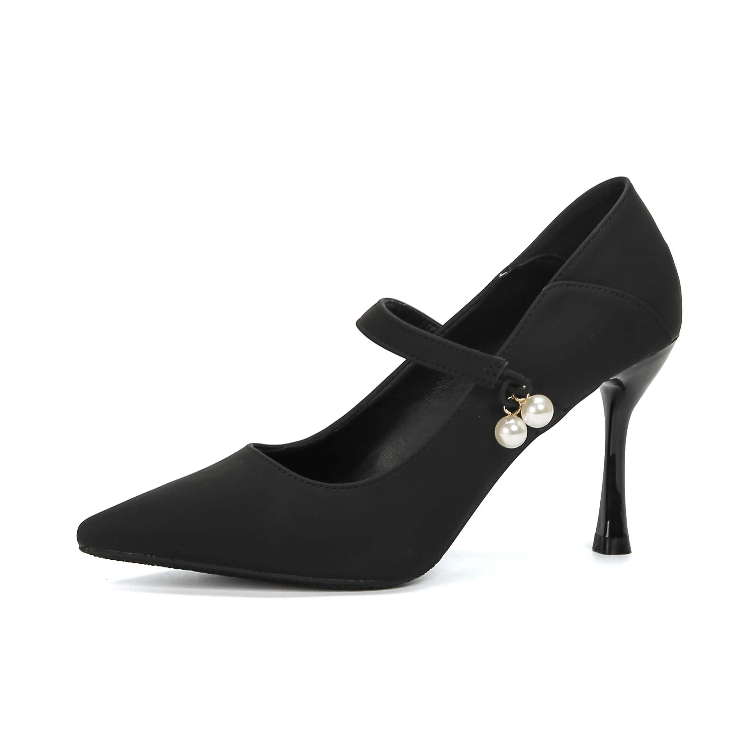 Classy Women's Black Microfiber Office Shoes Stiletto Heel Mary Jane Pumps Pearl Accent 7cm/5cm Slip-On Comfort Summer Solid