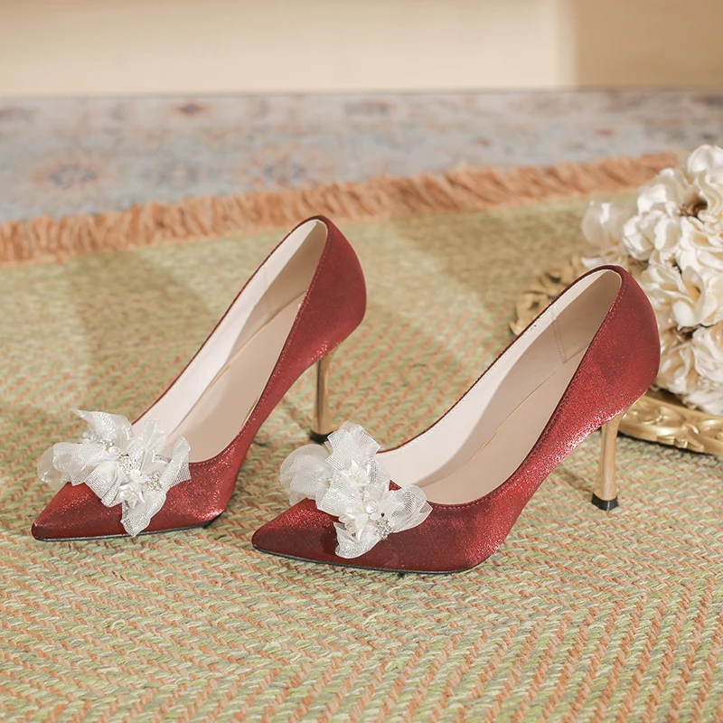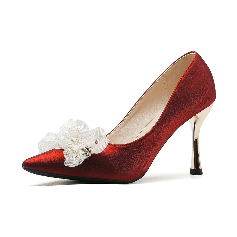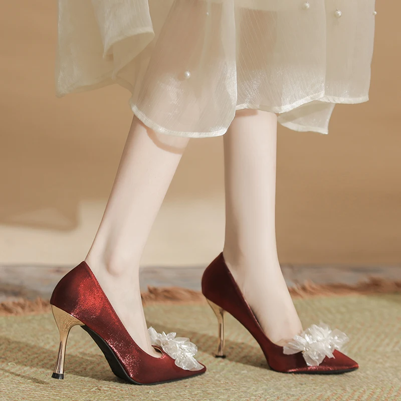 Women's Fashionable Summer Lace Plush Breathable Design Stiletto Heel Pointed Toe Trendy Styles Sold Directly Source Factory