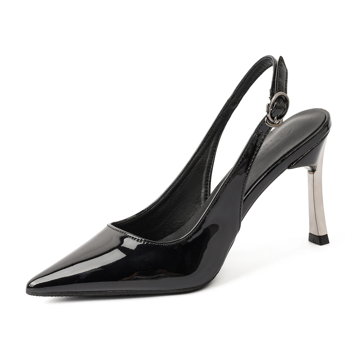 Classy Women's Black Patent Leather Comfortable Stiletto Heel Slip-On Pointed Toe Pumps with Metallic Heel Accent for Summer